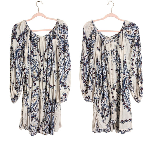 Free People Dress Women’s Size Large Ivory paisley combo Boho Tunic Women Small