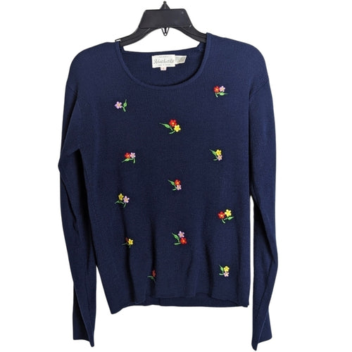 Vintage Tight Knit Sweater Embroidered Flowers Women's Large