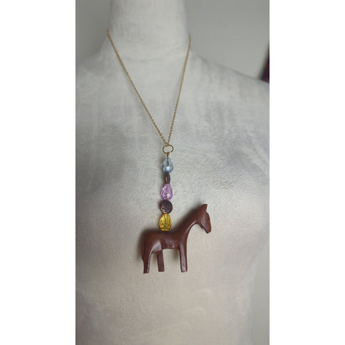 Handcrafted NWOT Wood Horse Beaded Necklace Costume Jewelry Horse Girl