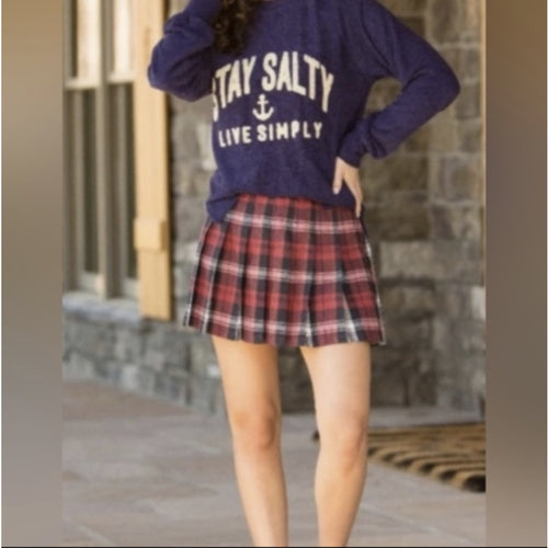 NWOT Simply Southern Plaid Pleated Mini Skirt Women's Size L