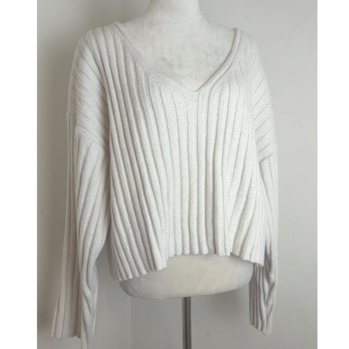 Oversized Slouchy Wool Blend Ribbed Knit Cropped Sweater Wide Sleeves Women's XL