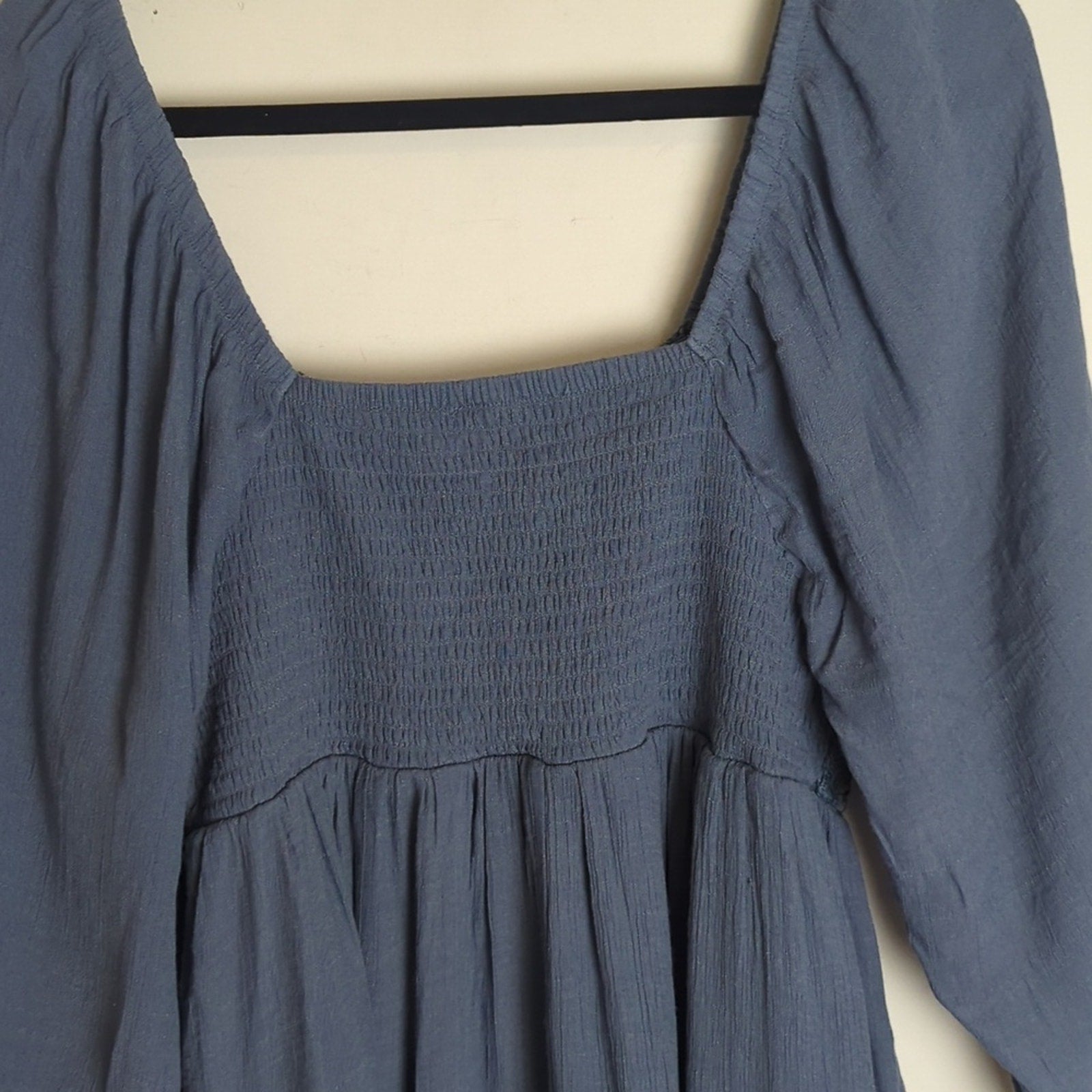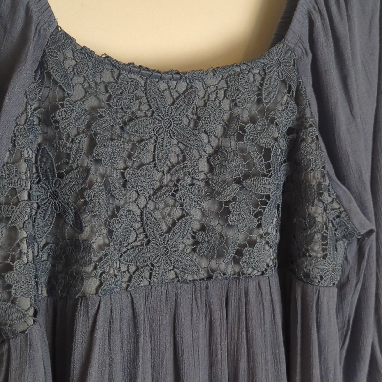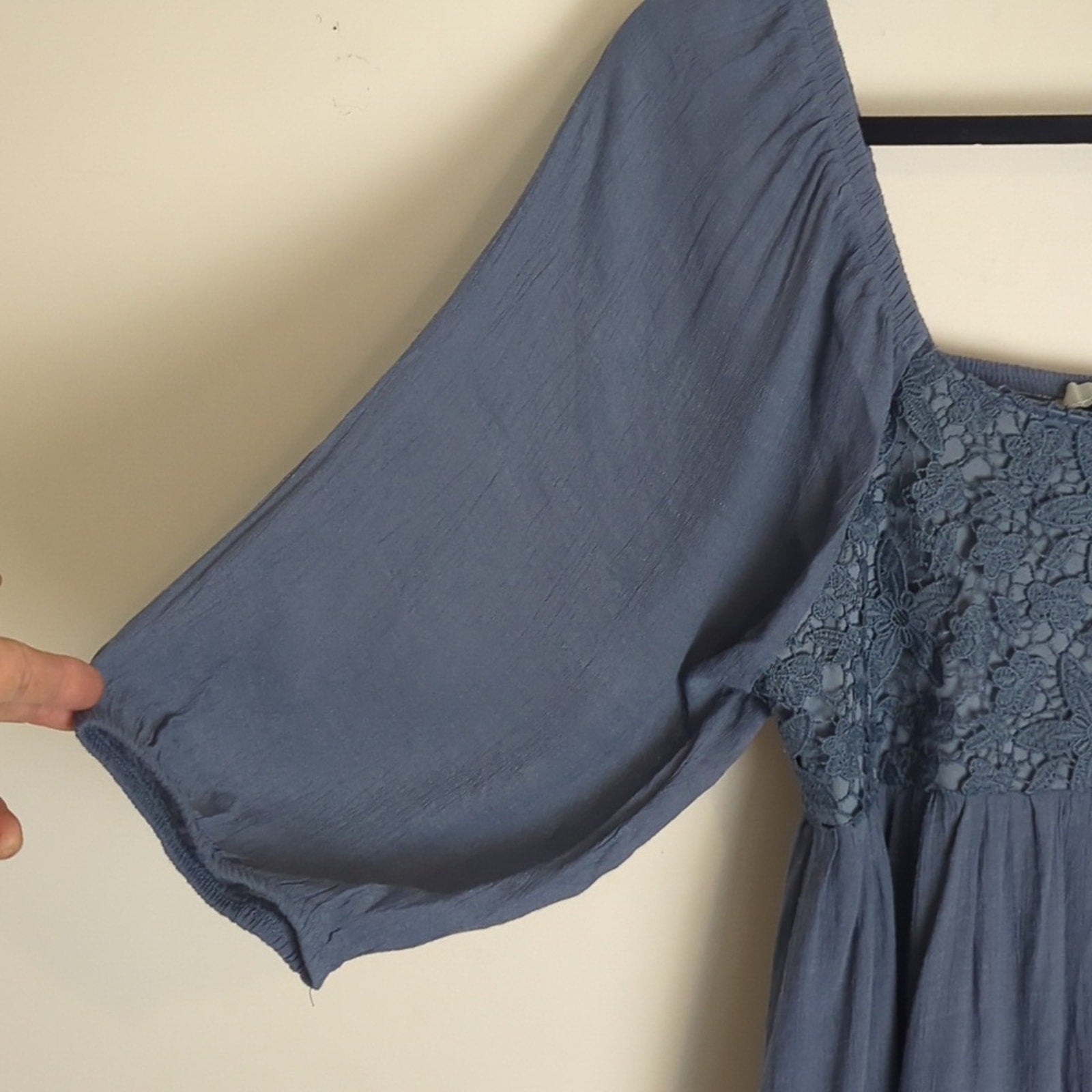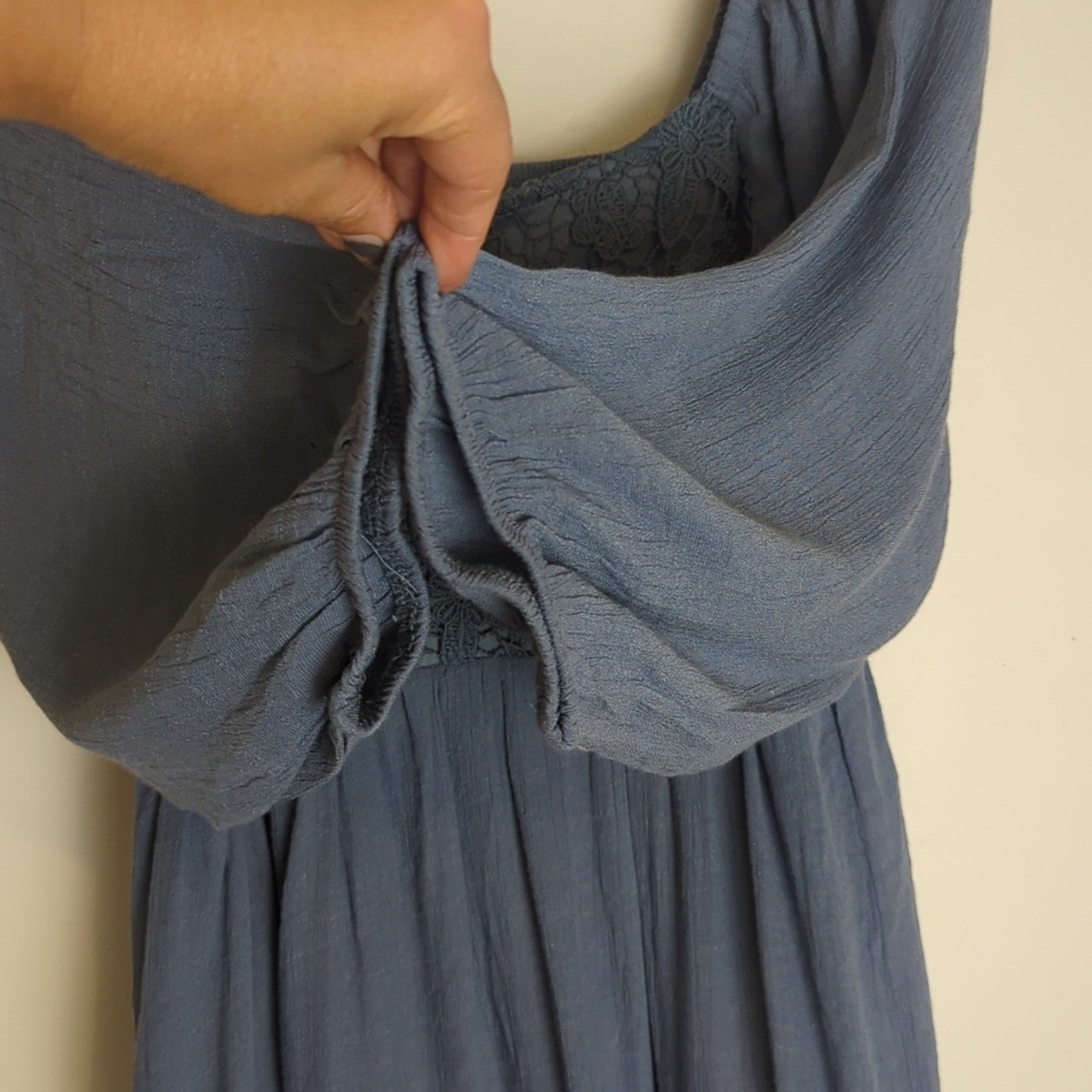 Crochet Baby Doll Midi Dress Balloon Sleeves Smocked Back Women's PL
