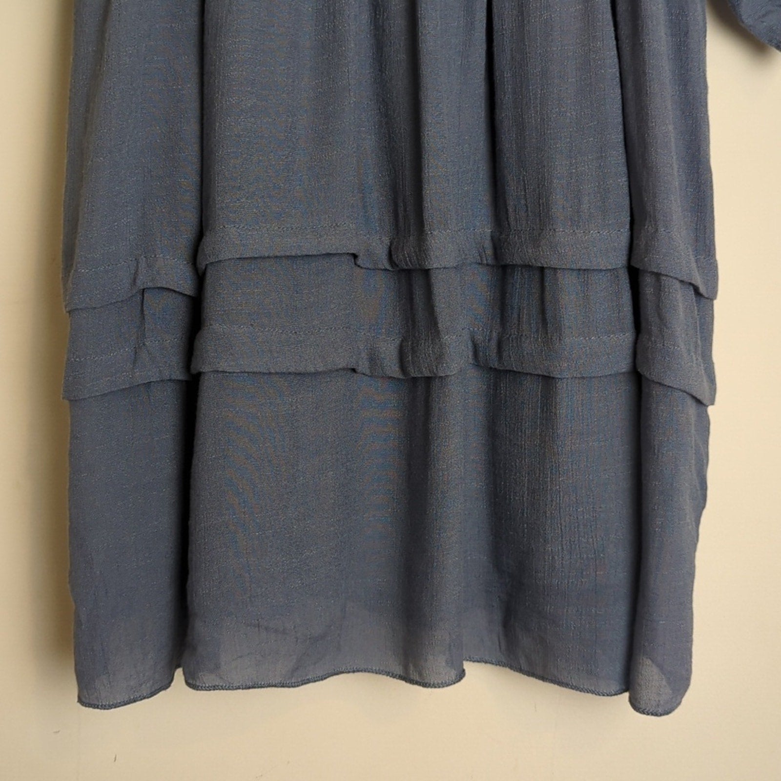 lightweight baby doll midi dress with crochet front and smocked back, balloon sleeves ruffled skirt