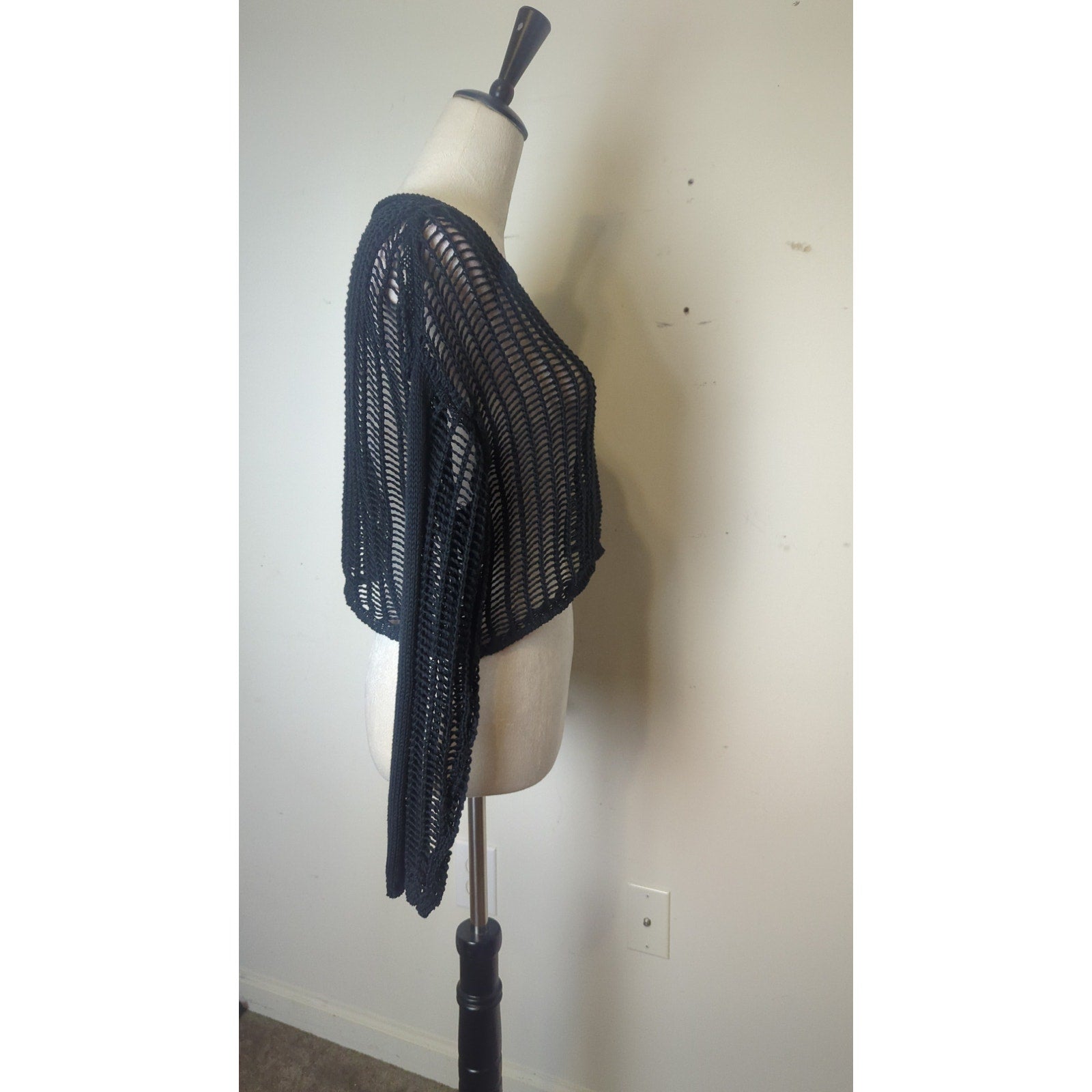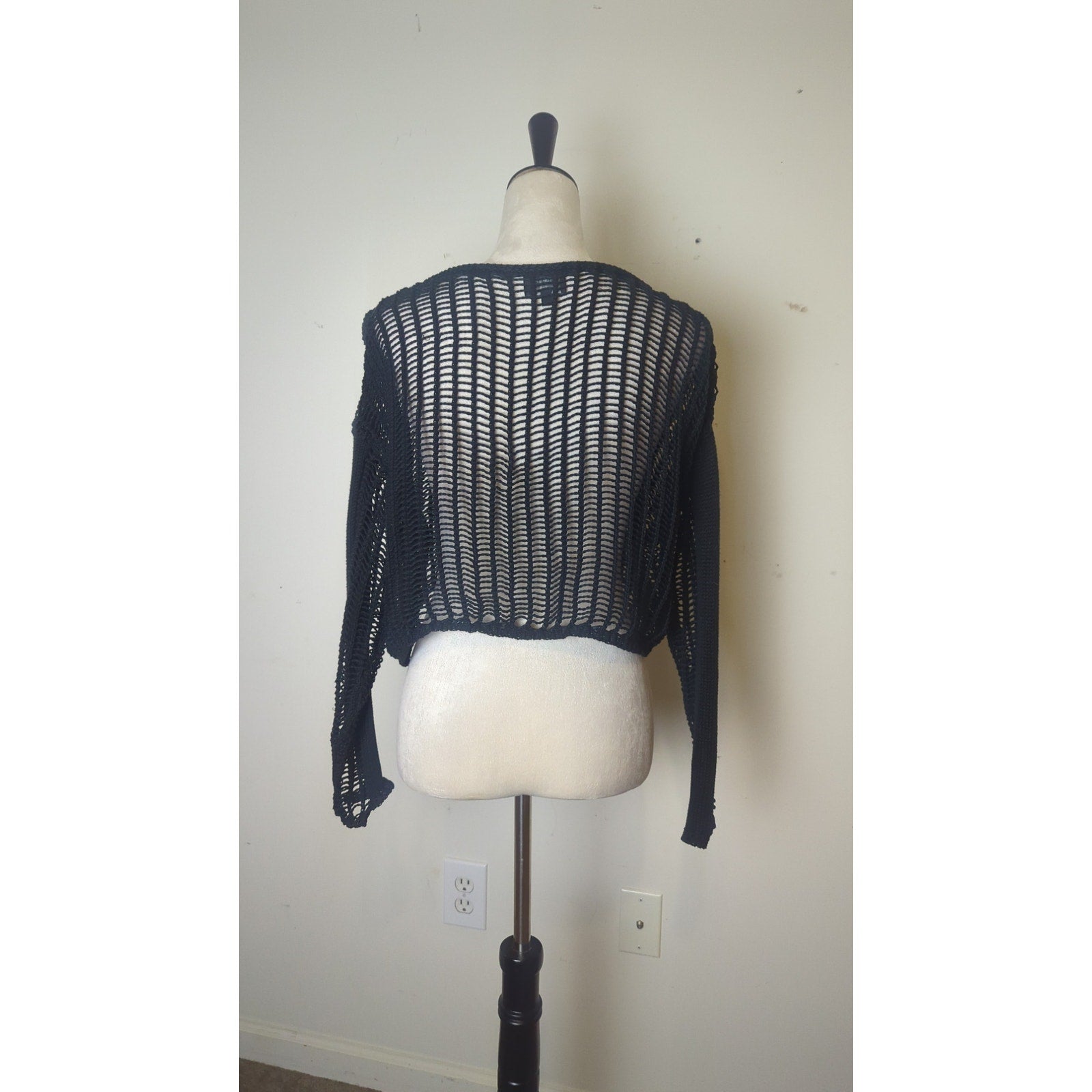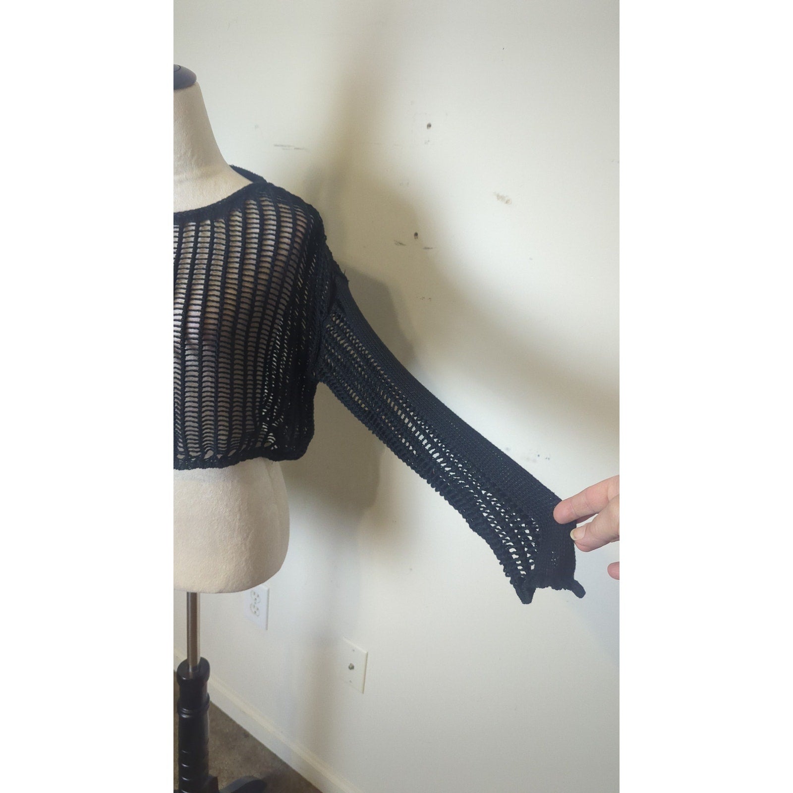 Edgy Y2K Clubwear Knit Fishnet Cropped Top Women's Medium
