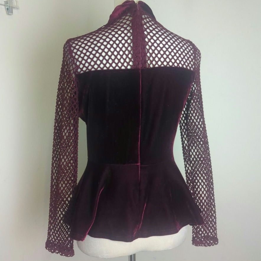 Like a new condition! Fishnet on arms, chest and v-neck to peplum hemline with velvet bodice.