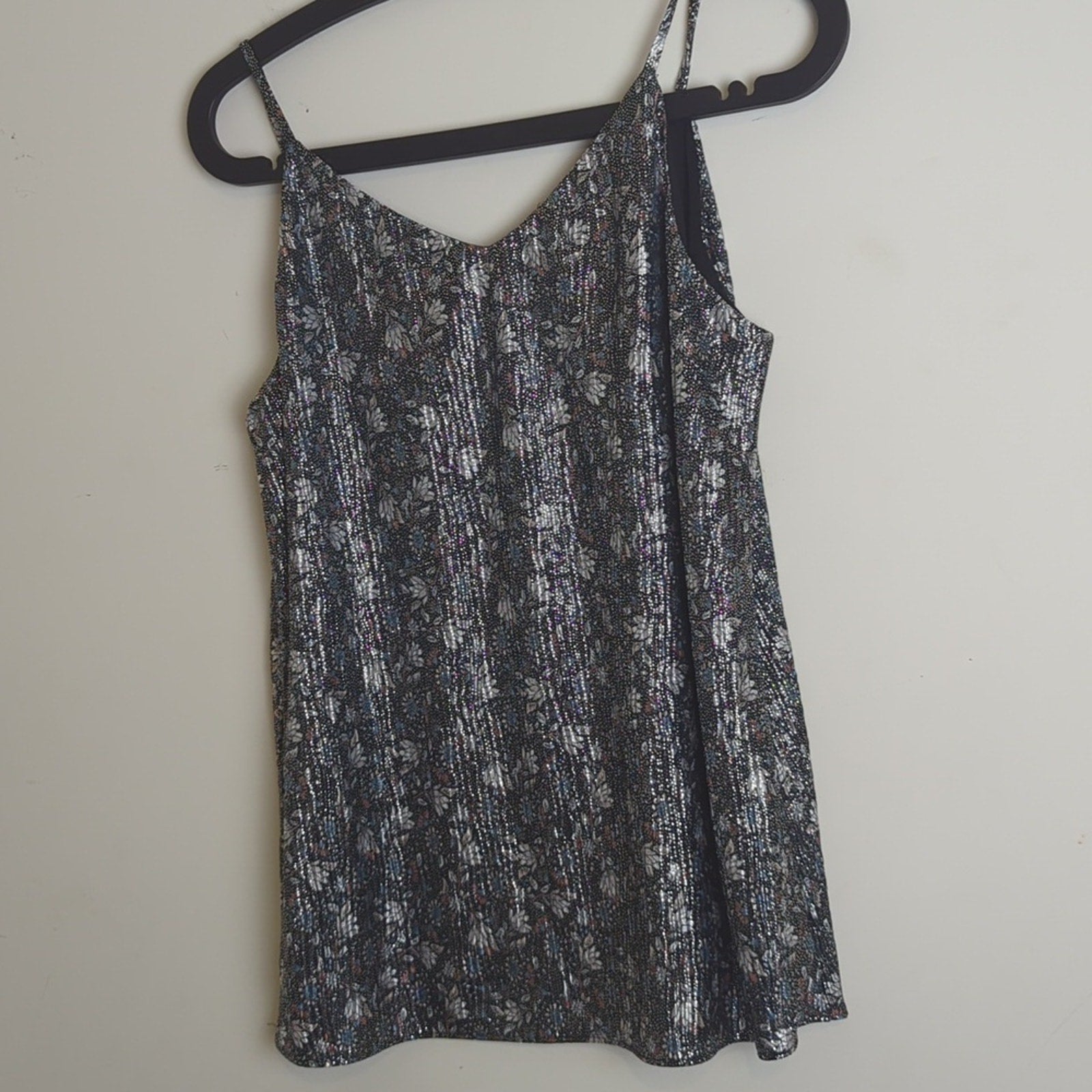 Excellent Condition!! Metallic shimmery floral print! The perfect v-neck blouse to have in your closet!!