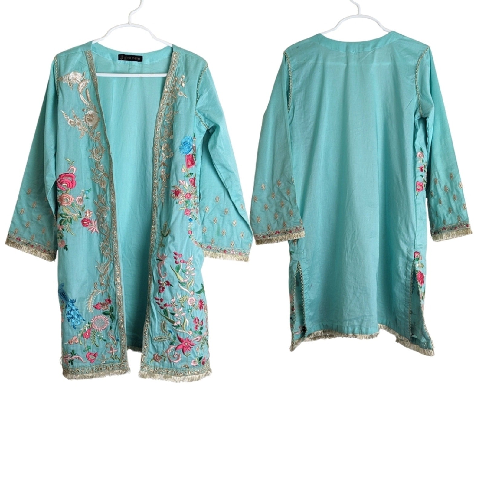J. Girls Pakistan Kimono Jacket Embroidered With Fringe Girls Size 7/8