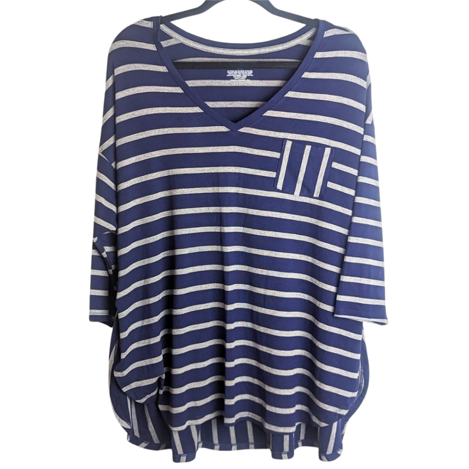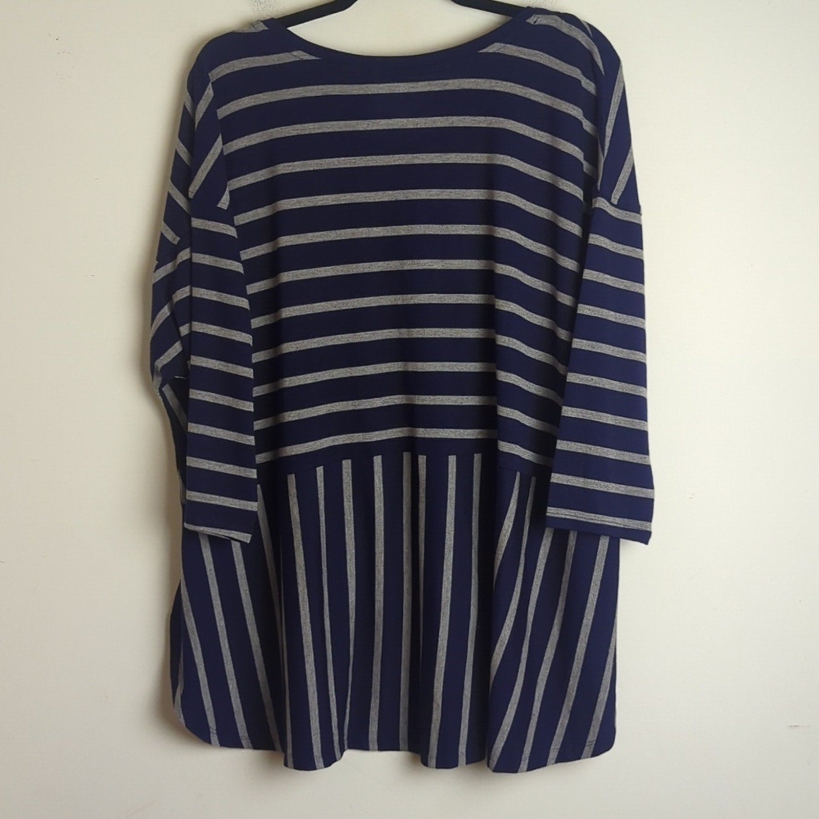 Lane Bryant Blue & Silver Striped 3/4 Sleeve Modal Tunic Women's Size 18/20