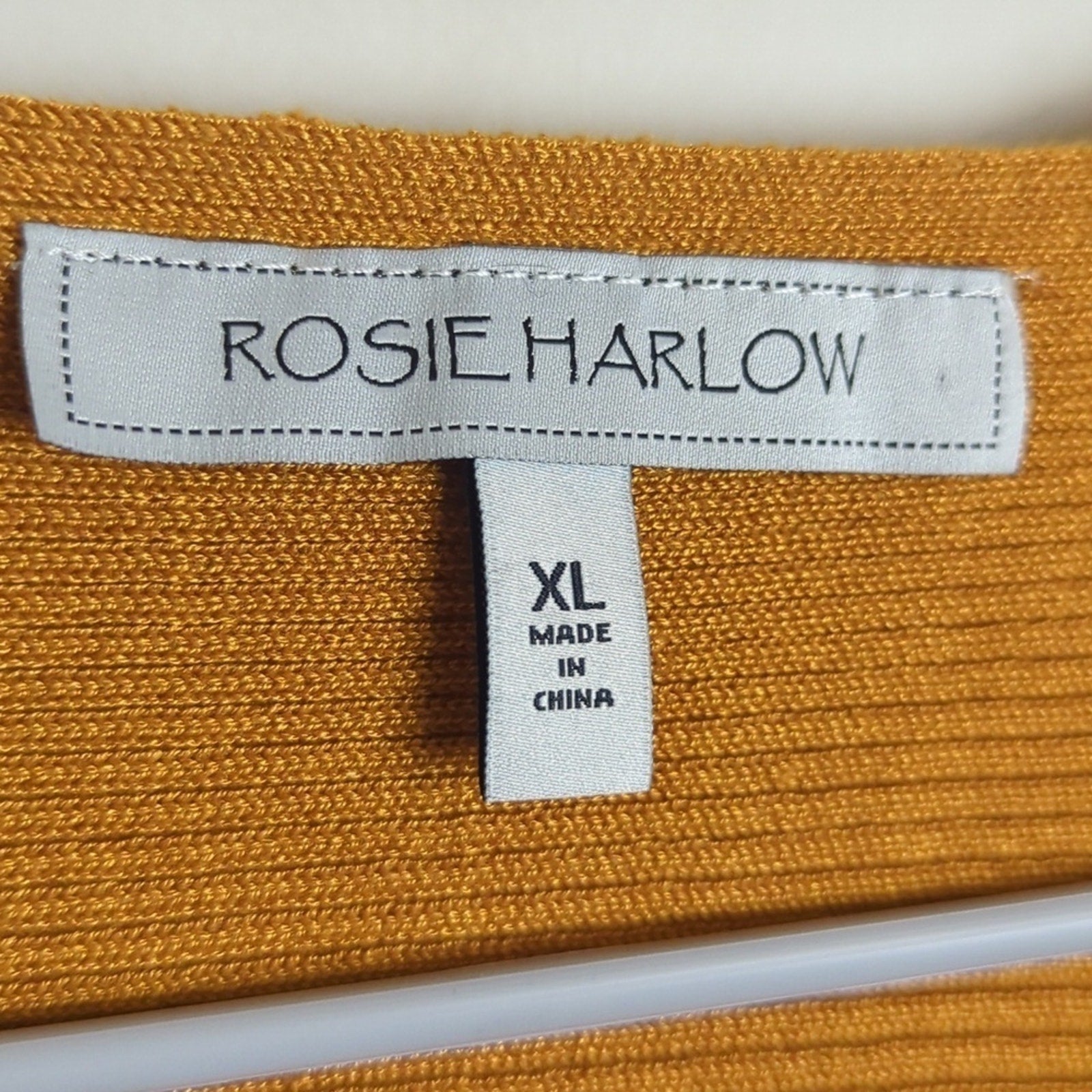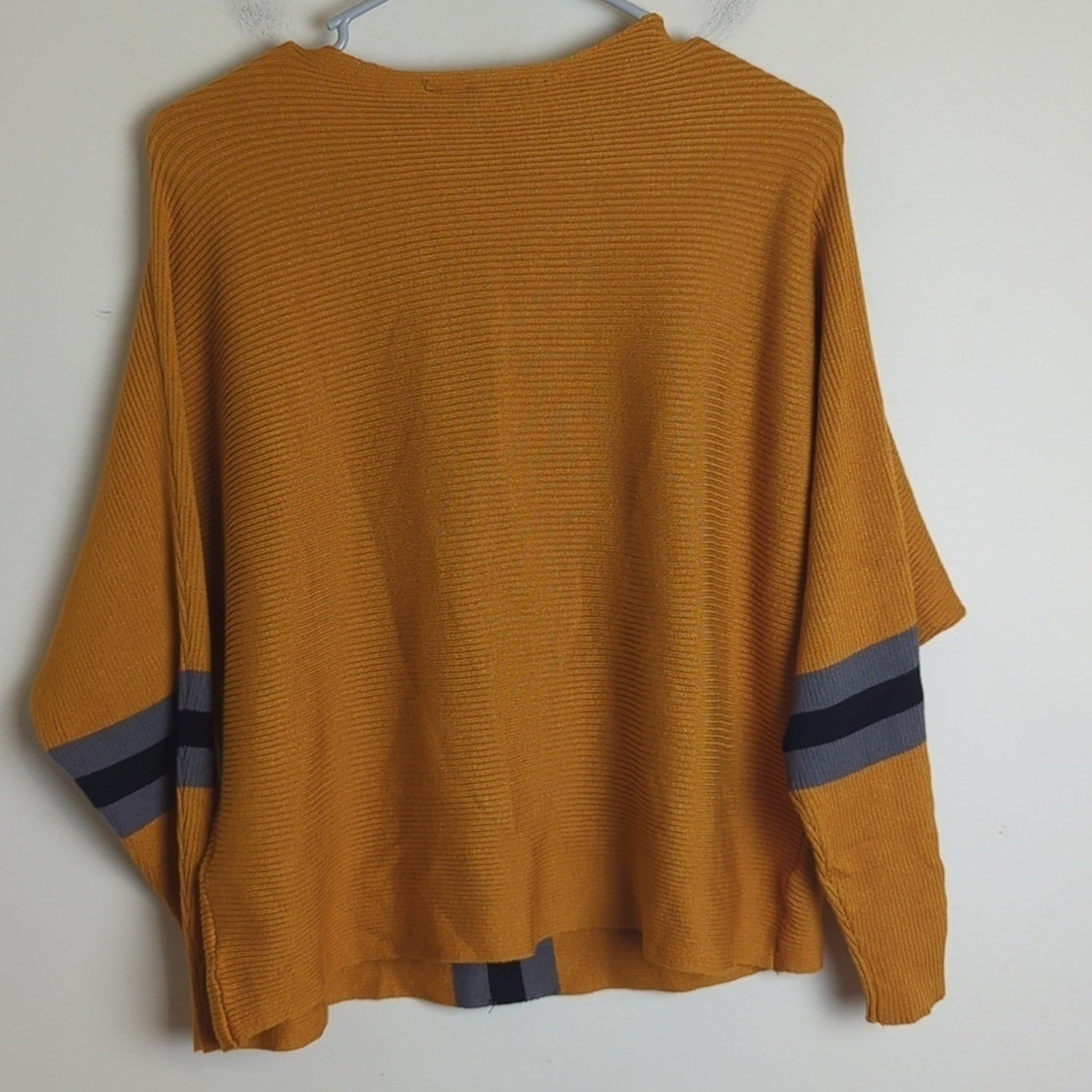 Mustard Yellow Stretch Jersey Ribbed Knit Sweater Women's Size XL