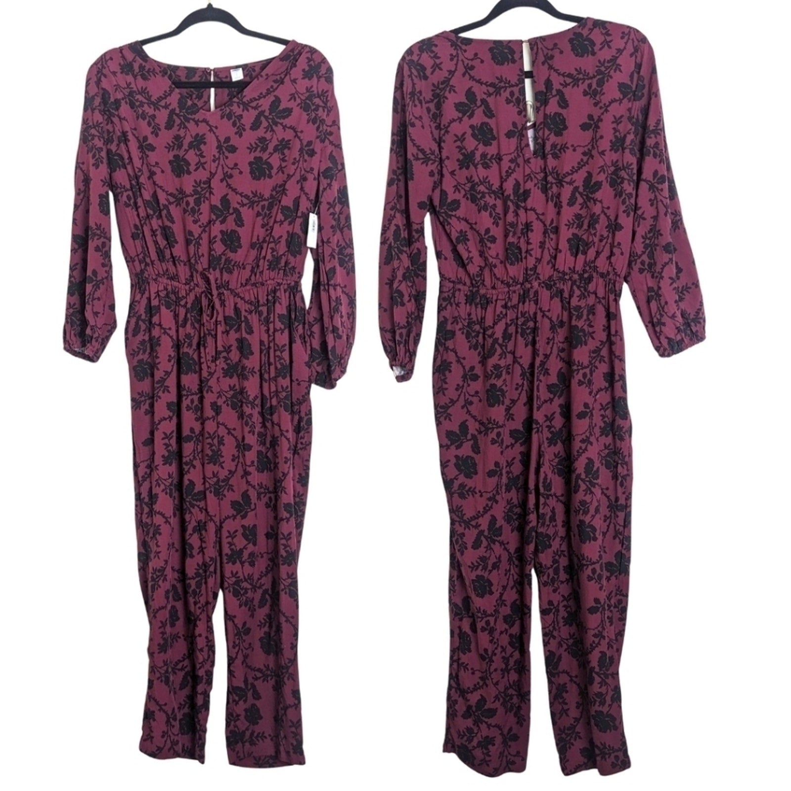 Pockets, elastic wrists and waist, straight leg cut slightly tapered at ankle. one small flaw is at neckline on inside right at the V. See pics I took from inside and outside.