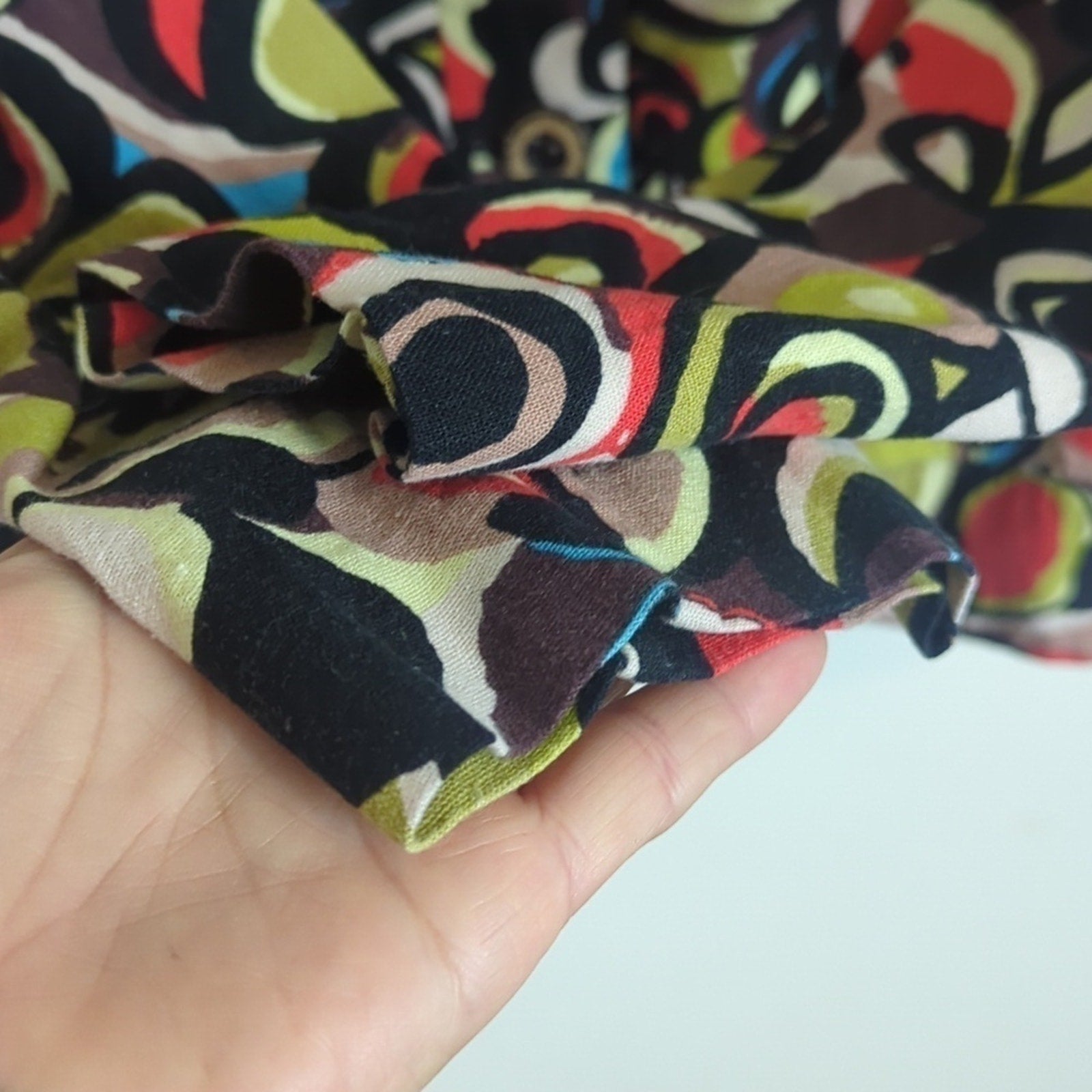 tags: Linen, art to wear, abstract, colorful, unique, retro, funky,