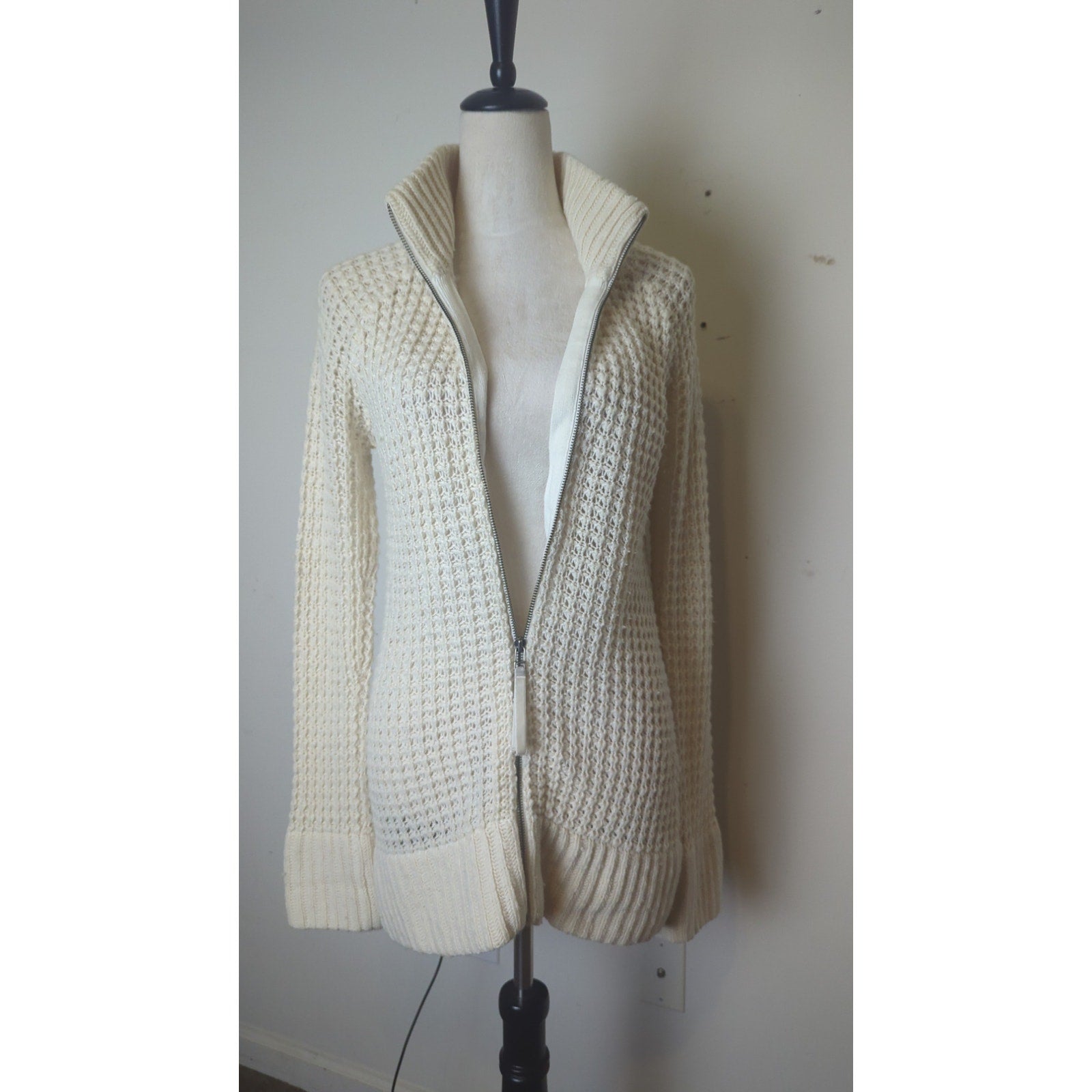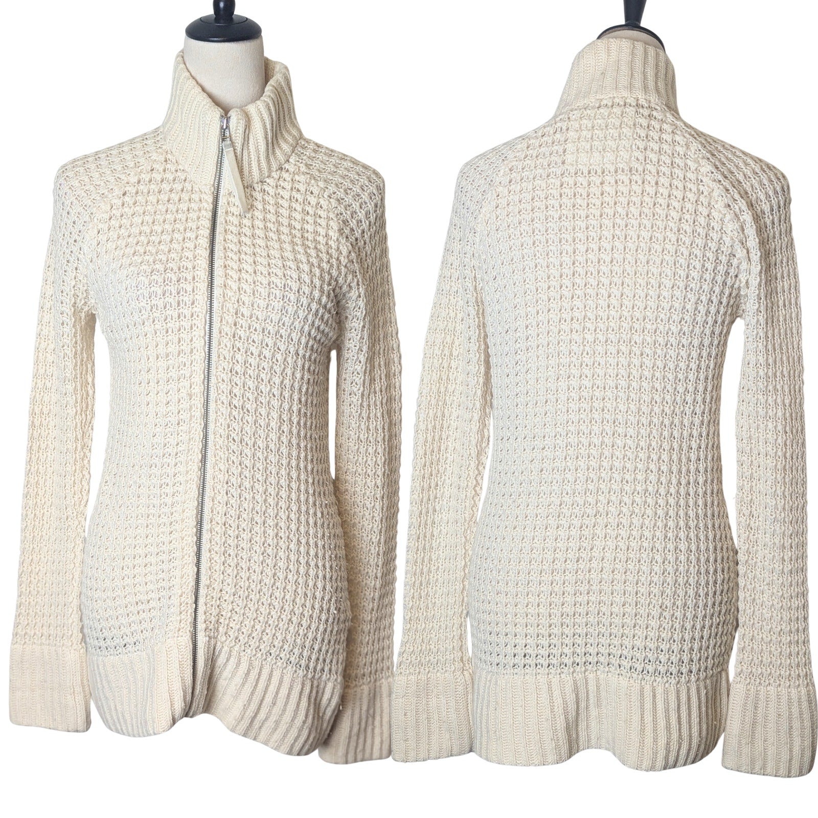 Almost vintage 2007 Old Navy made in Hong Kong waffle knit zip up mock neck cardigan with ribbed hemline and wrists!
