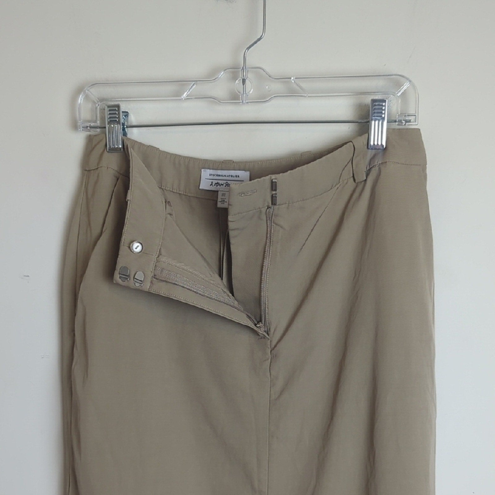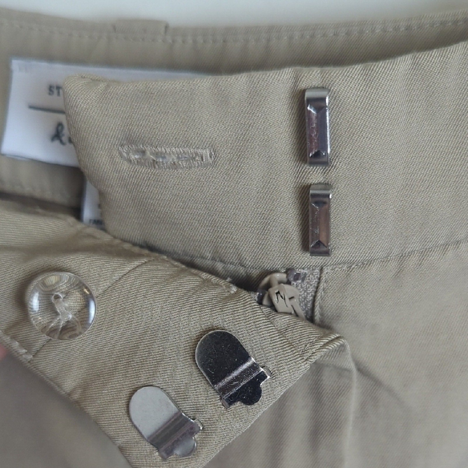 great condition! side pockets, belt loops and zipper button clasp closure. close up pictures look darker than actual color!
