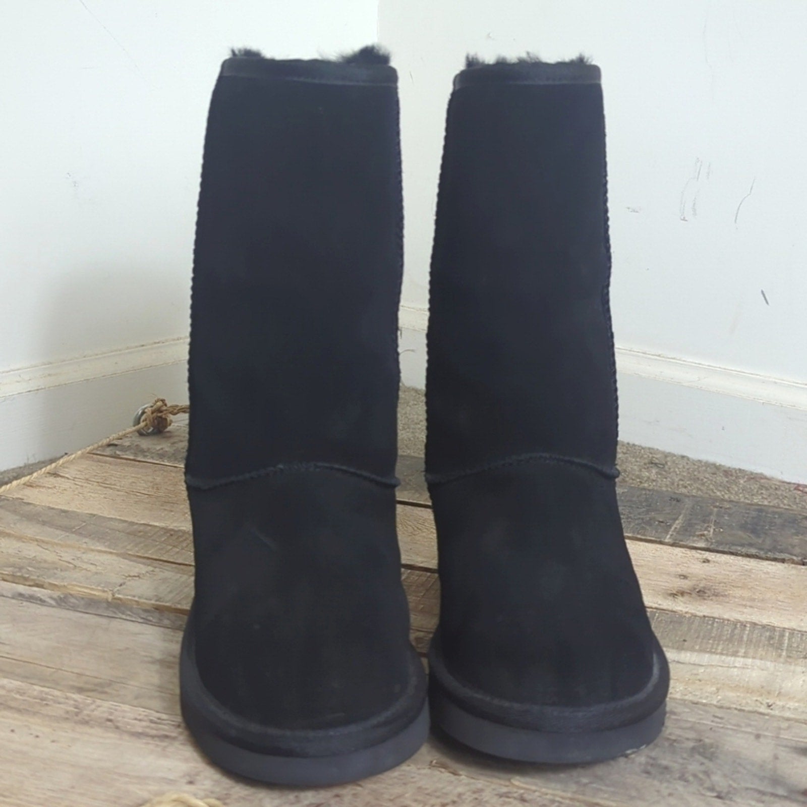 UGG Koolaburra Slip On Suede Leather Sheepskin Boots Wool/Poly Sherpa Size 6