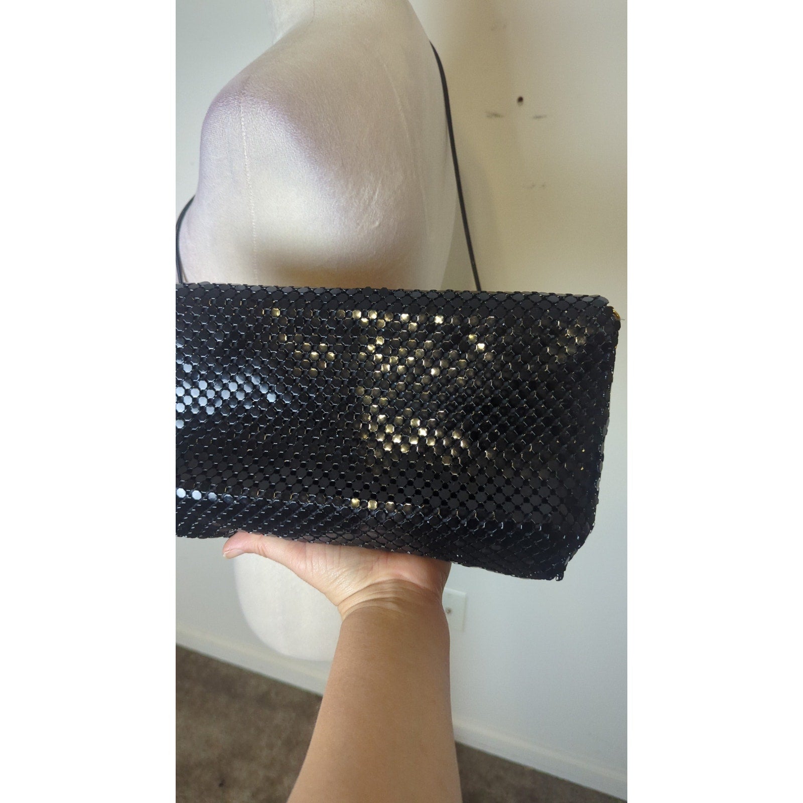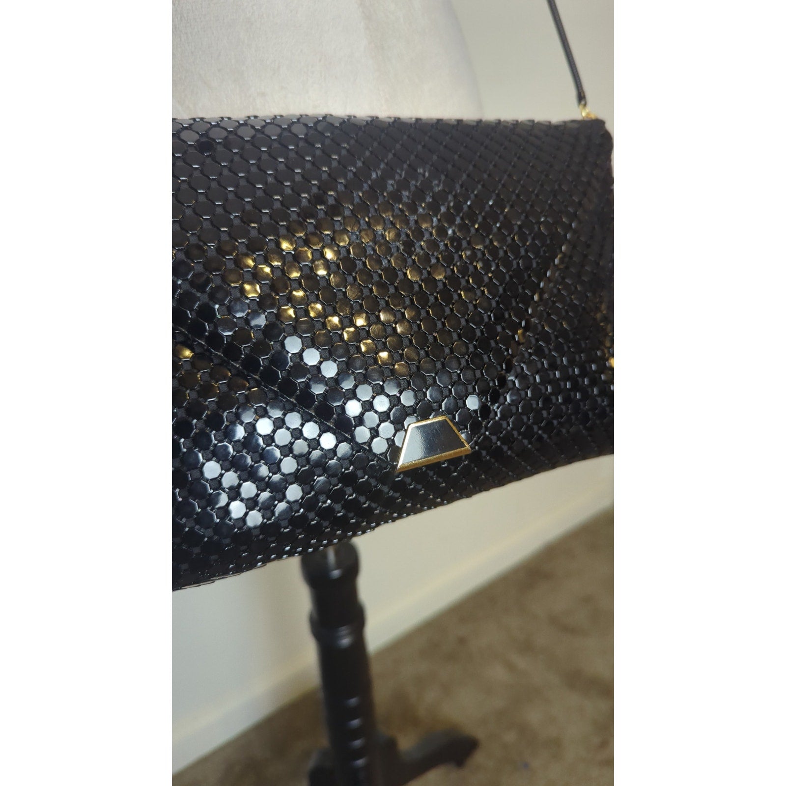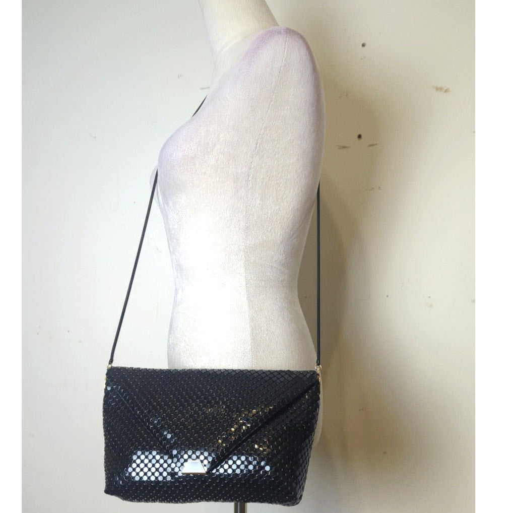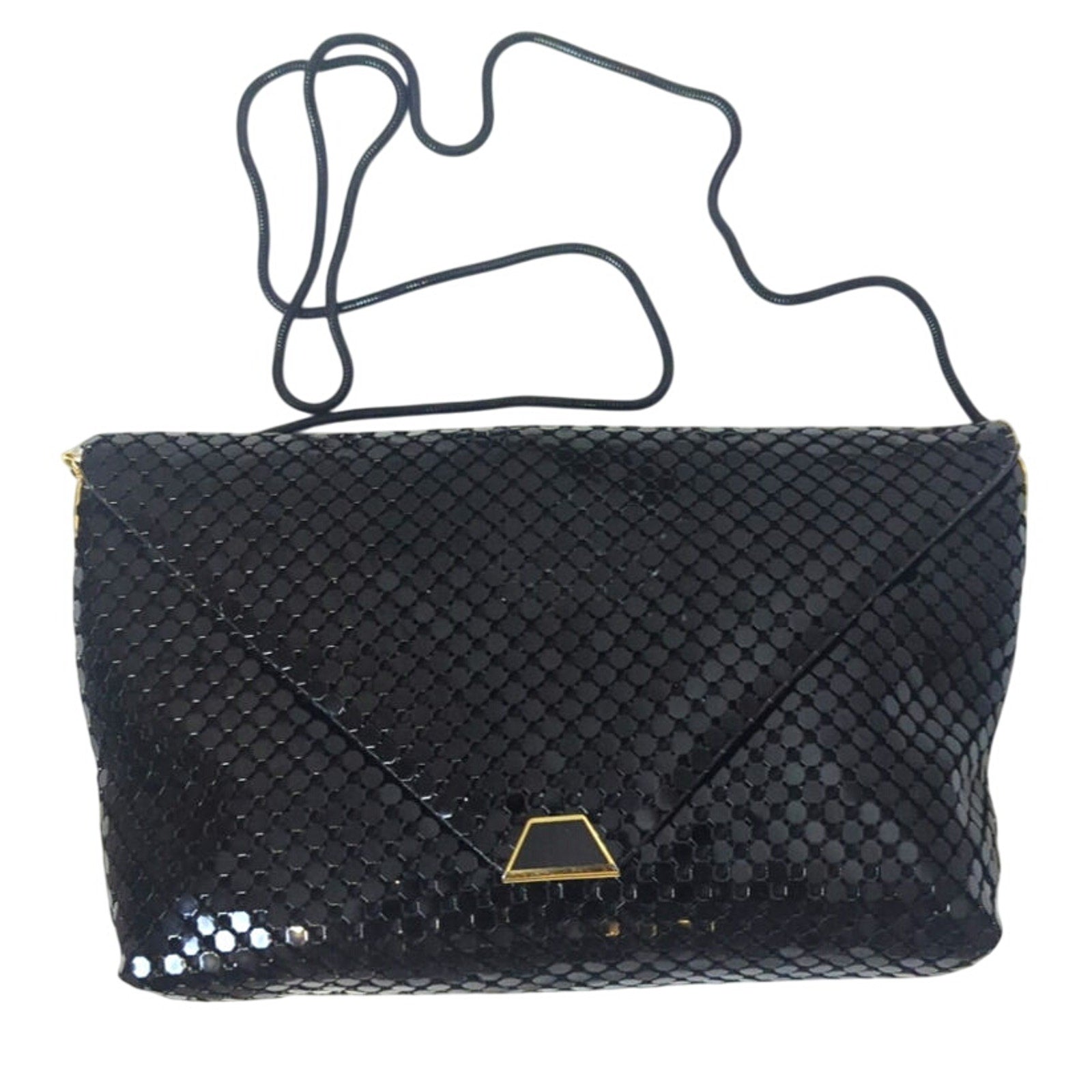 Great condition Vintage 1960s crossbody shoulder bag. Metal cording strap with gold metal details on side and magnetic snap closure.
