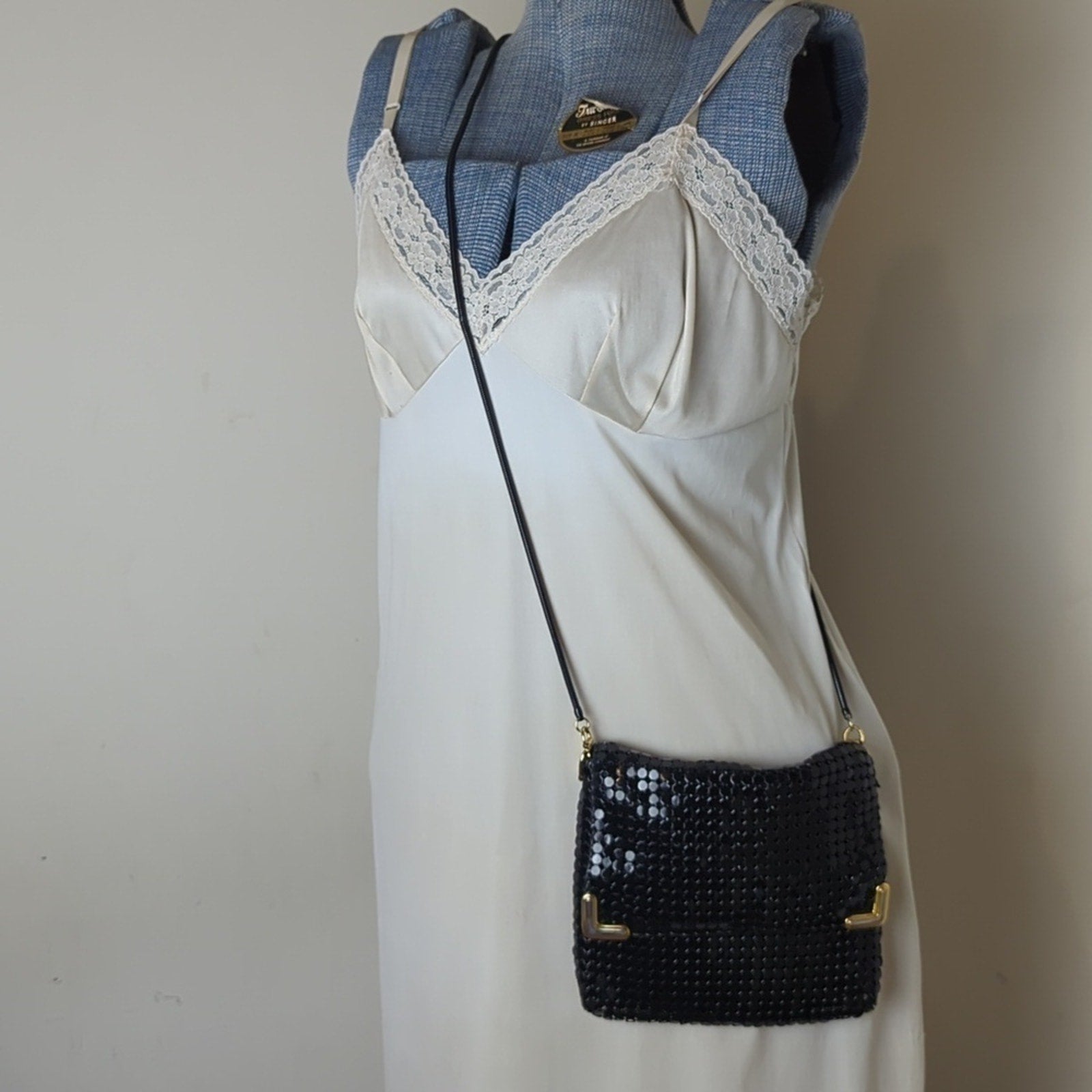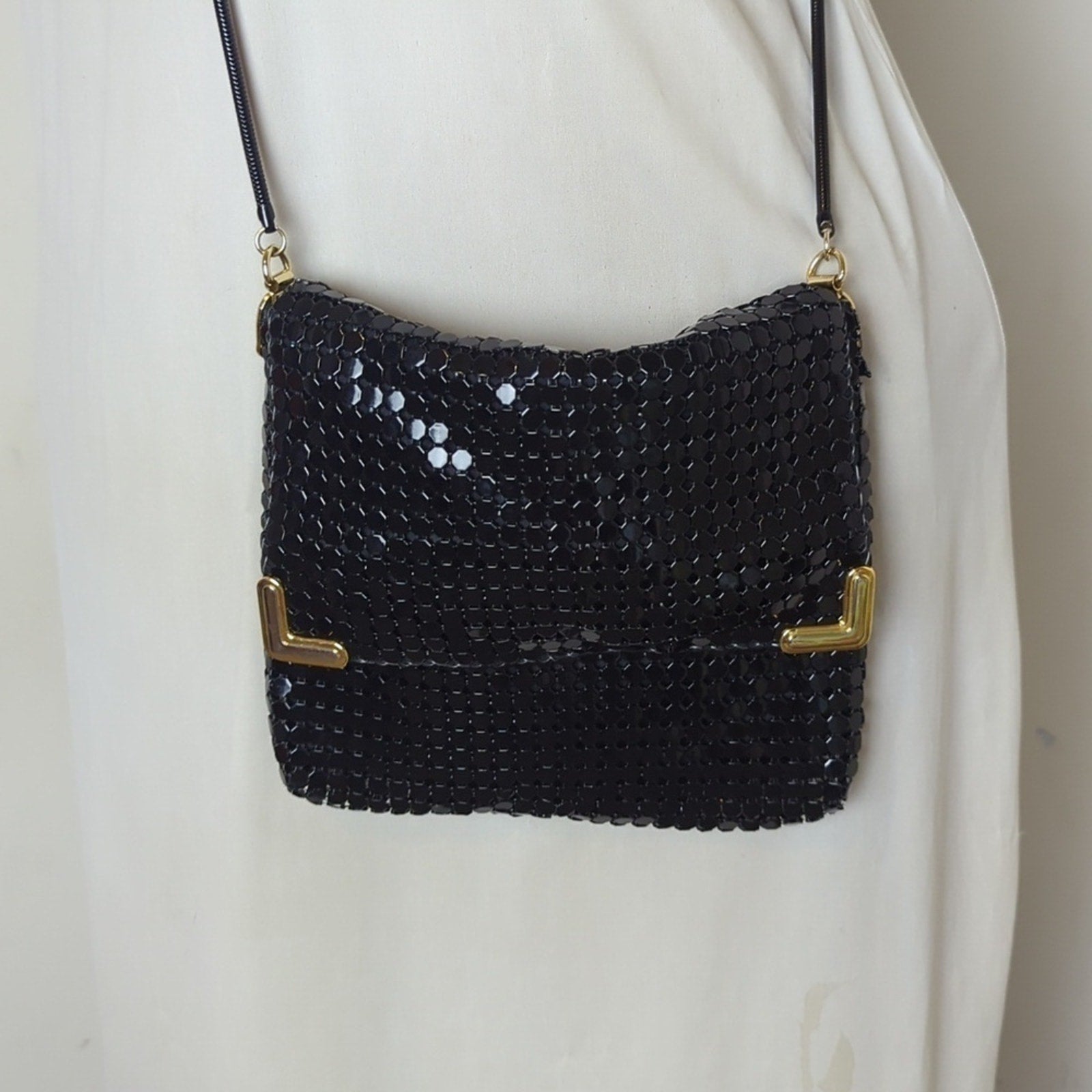 Vintage 80's Slinky Black Crossbody Purse With Art Deco Accents