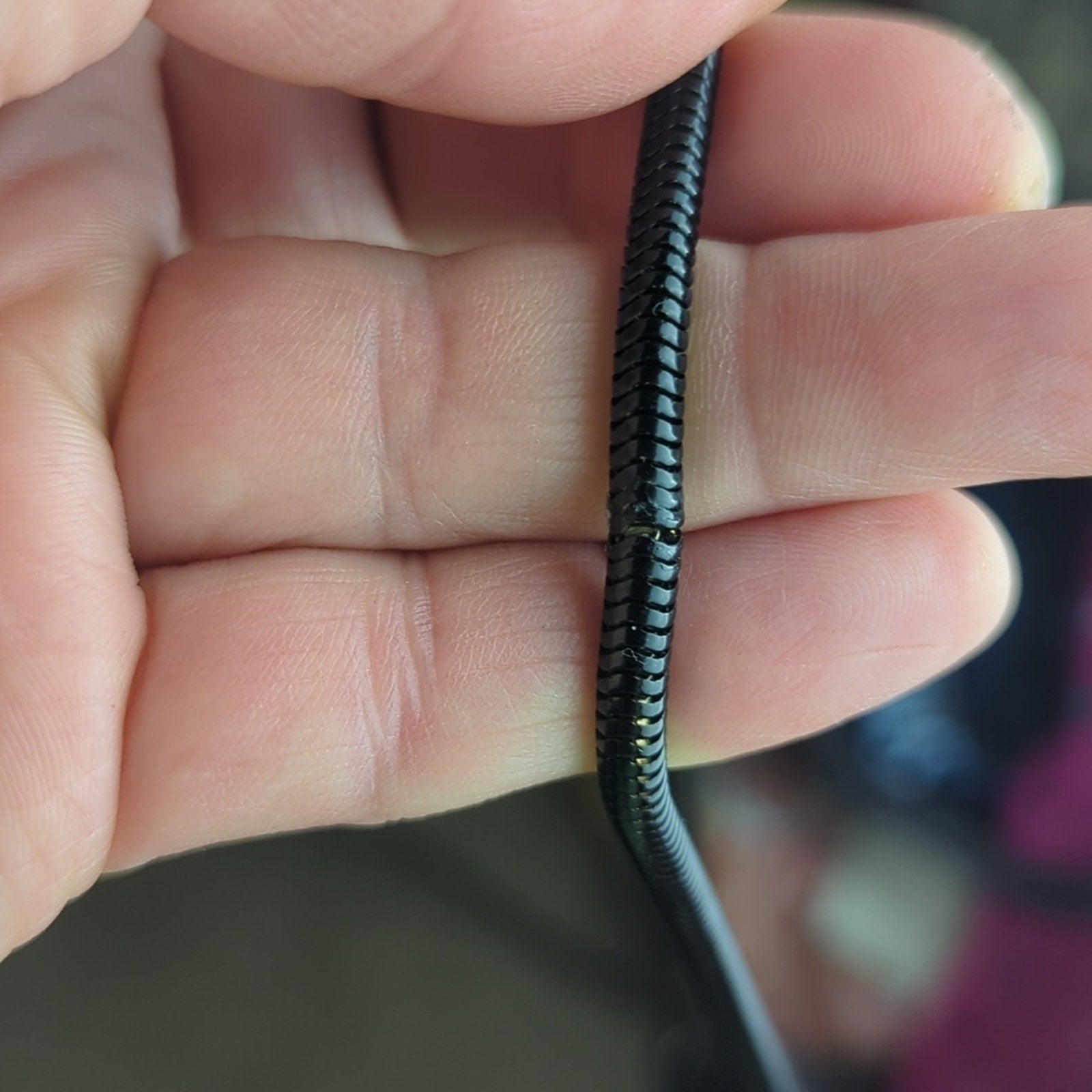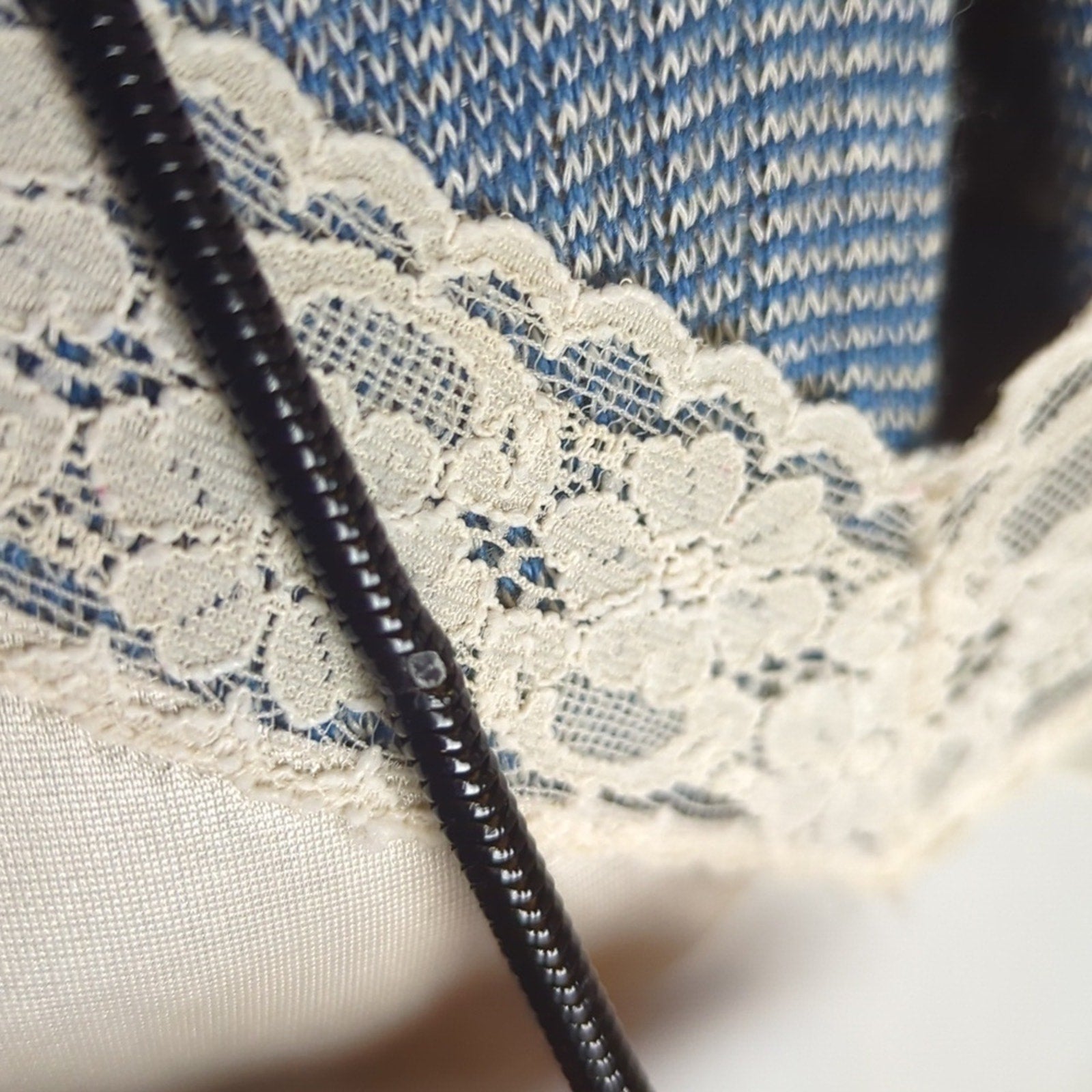 The shoulder strap is a corded metal and there is one notch out of one side. I put two pictures up with the lace behind it and one with me holding it in my hand.