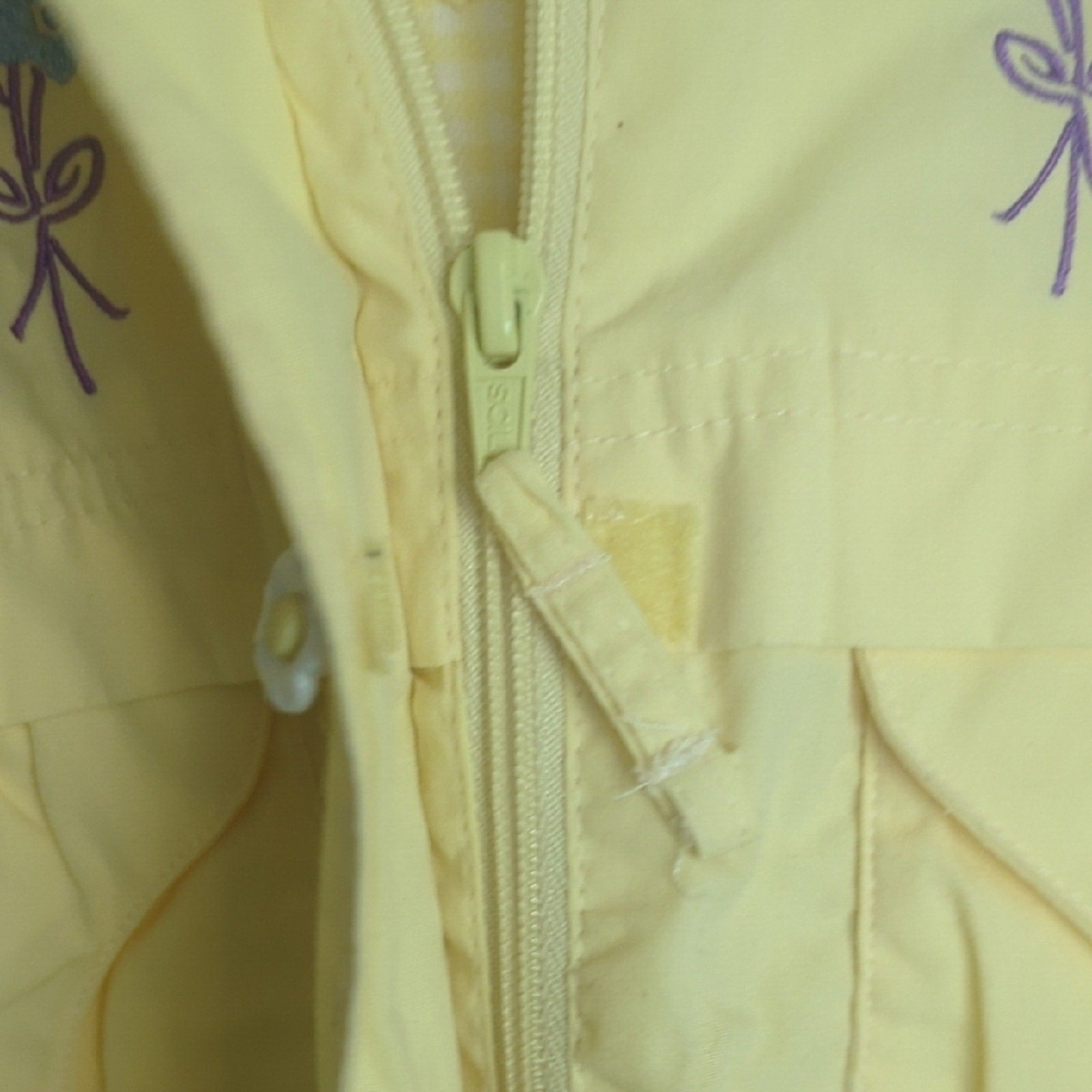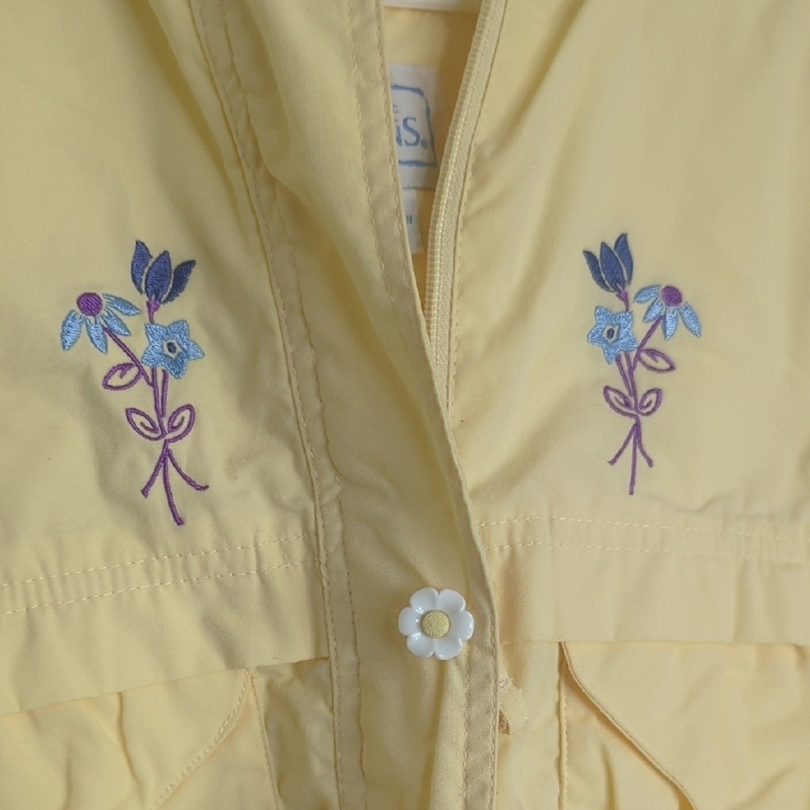 Adorable vintage spring jacket with adhesive and zipper closure and flower deor buttons on the front ,two front pockets
