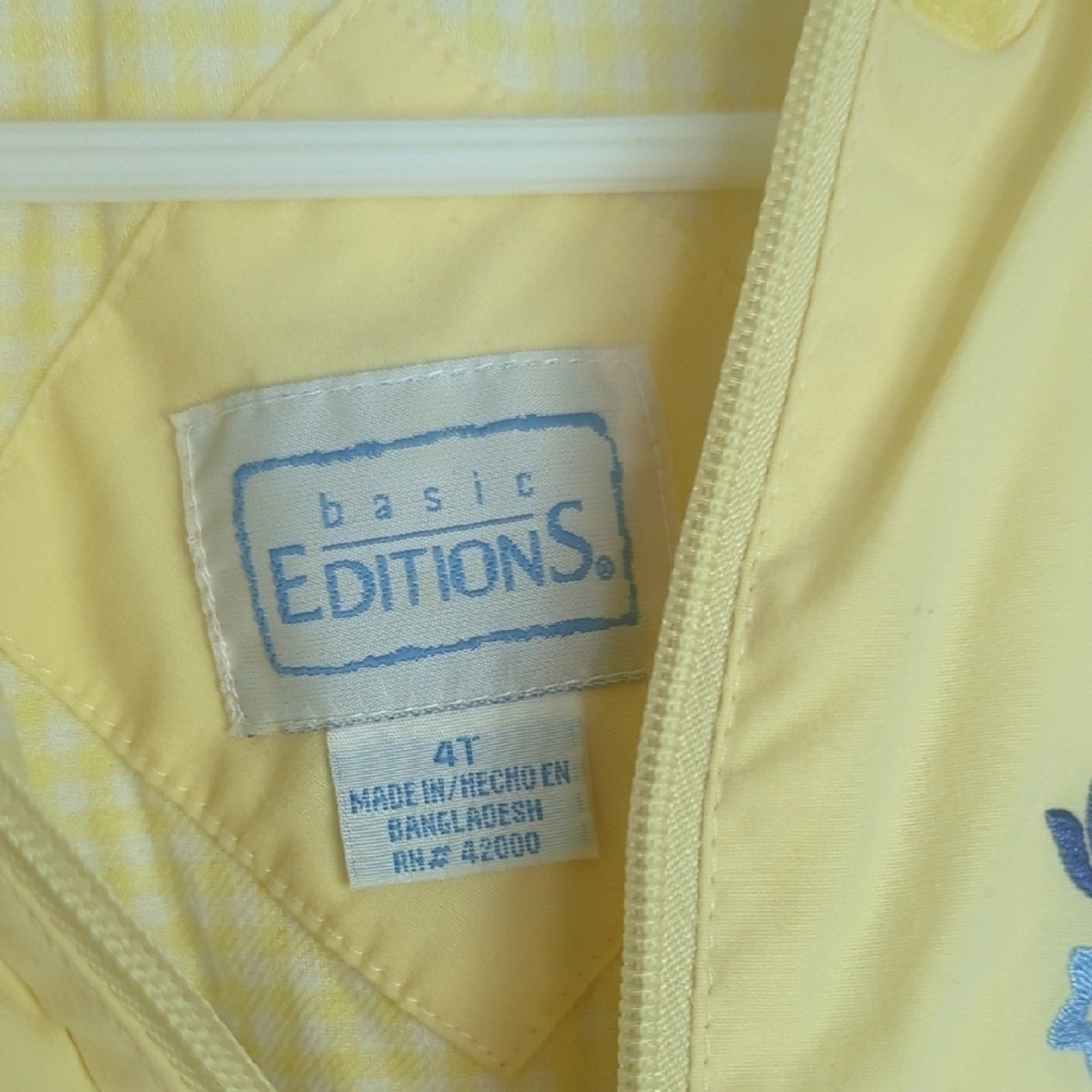 Vintage Hooded Jacket with Floral Embroidery & Buttons Checkered Lined Girls 4T