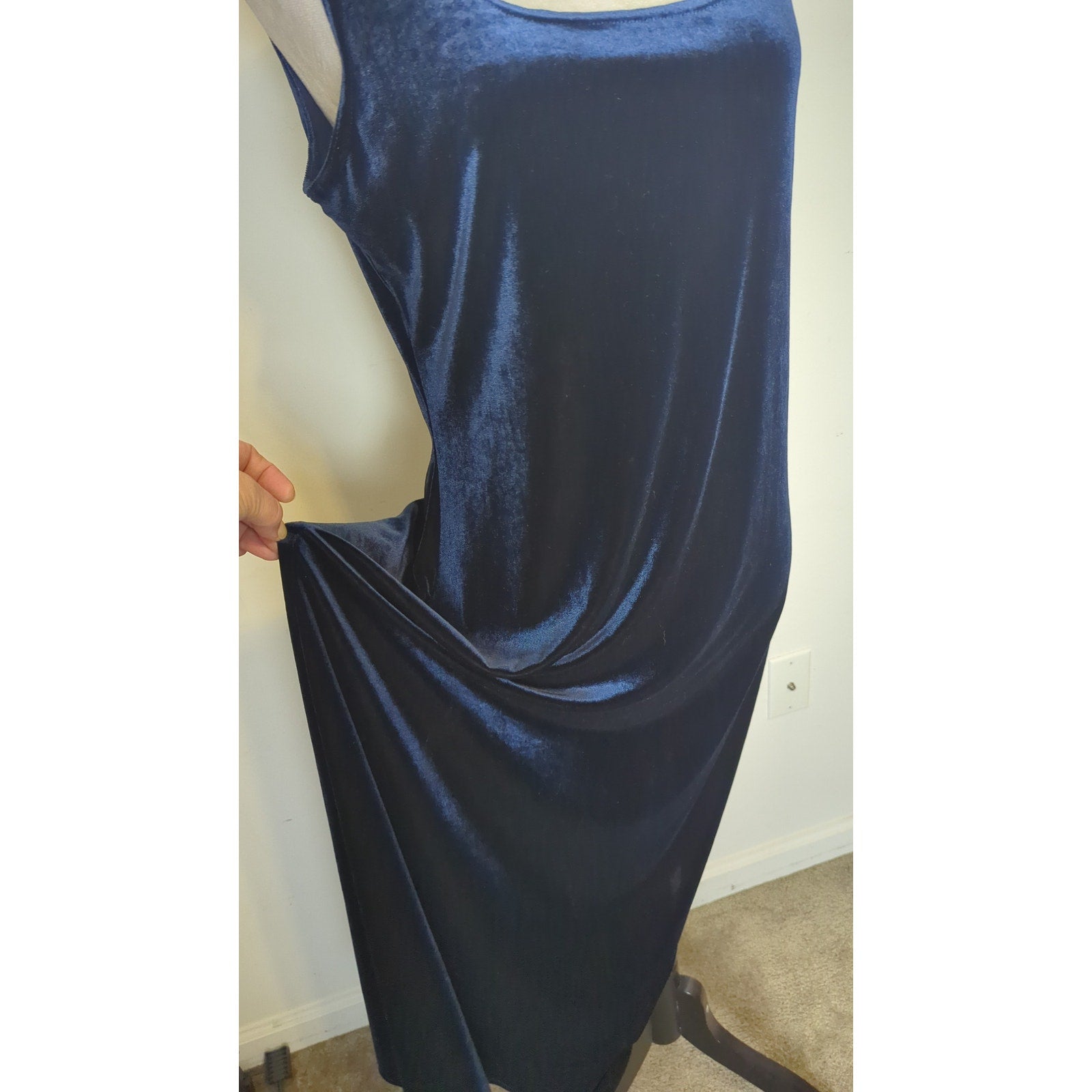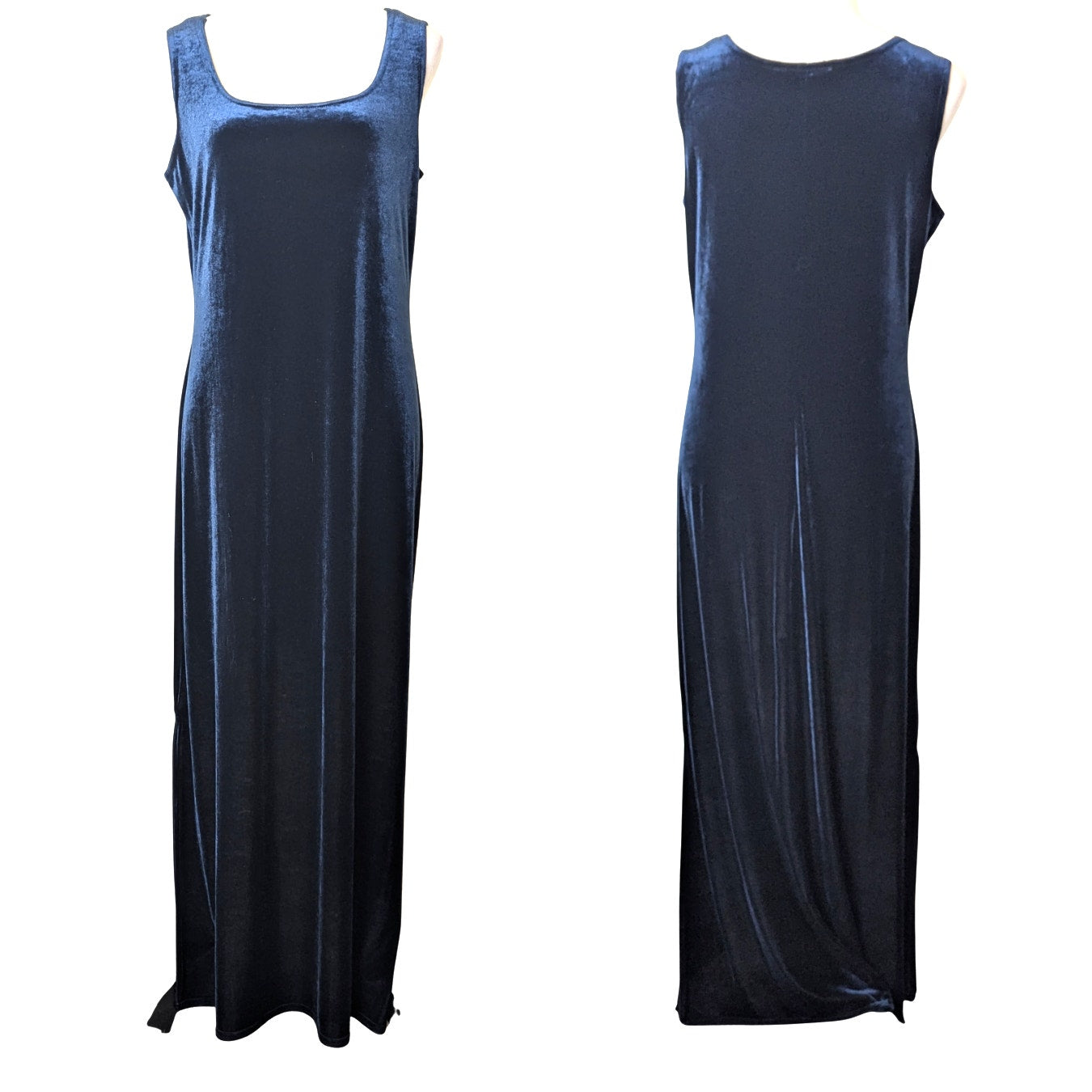 Beautiful soft deep navy blue velvet Maxi dress in excellent condition! Lots of movement which changes colors from black blue to light blue.