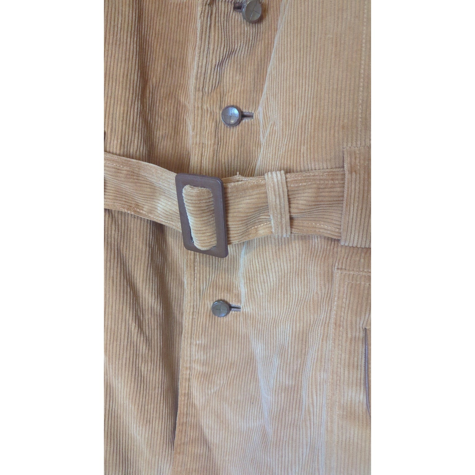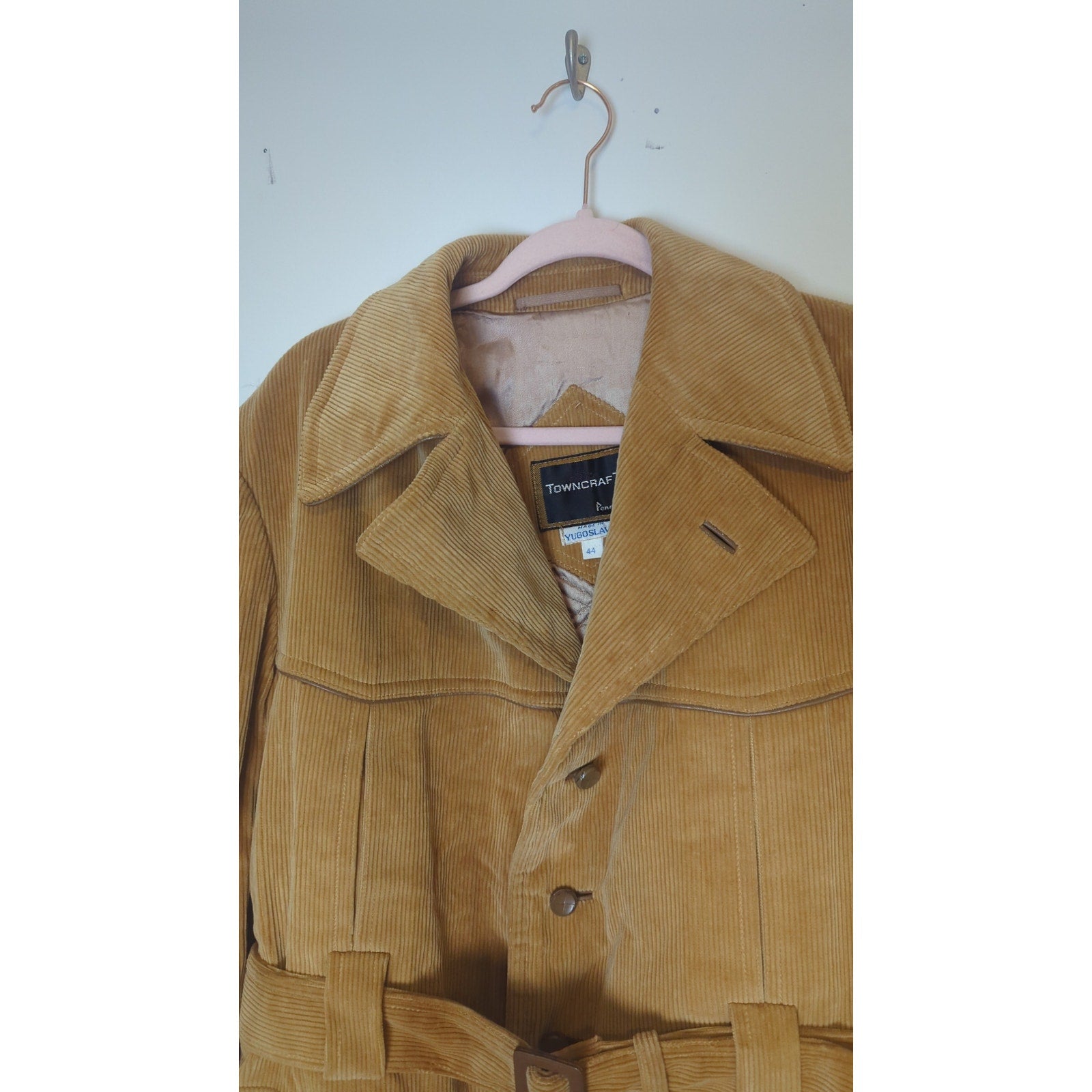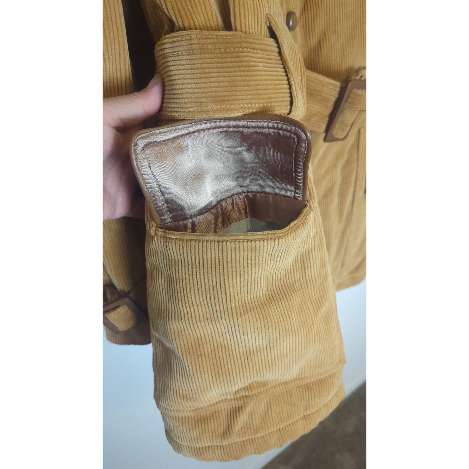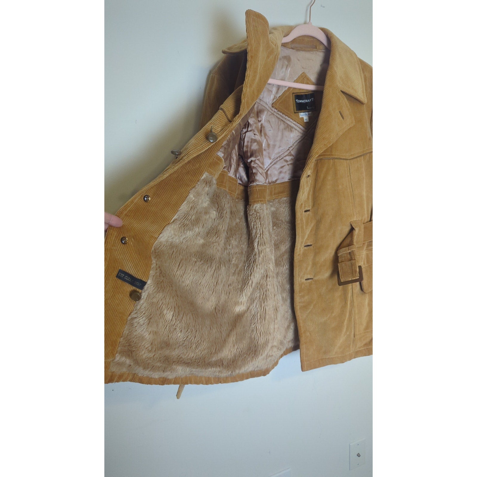 VTG 70s Towncraft Penneys Butterscotch Corduroy Belted Safari Jacket Coat XL Faux Fur