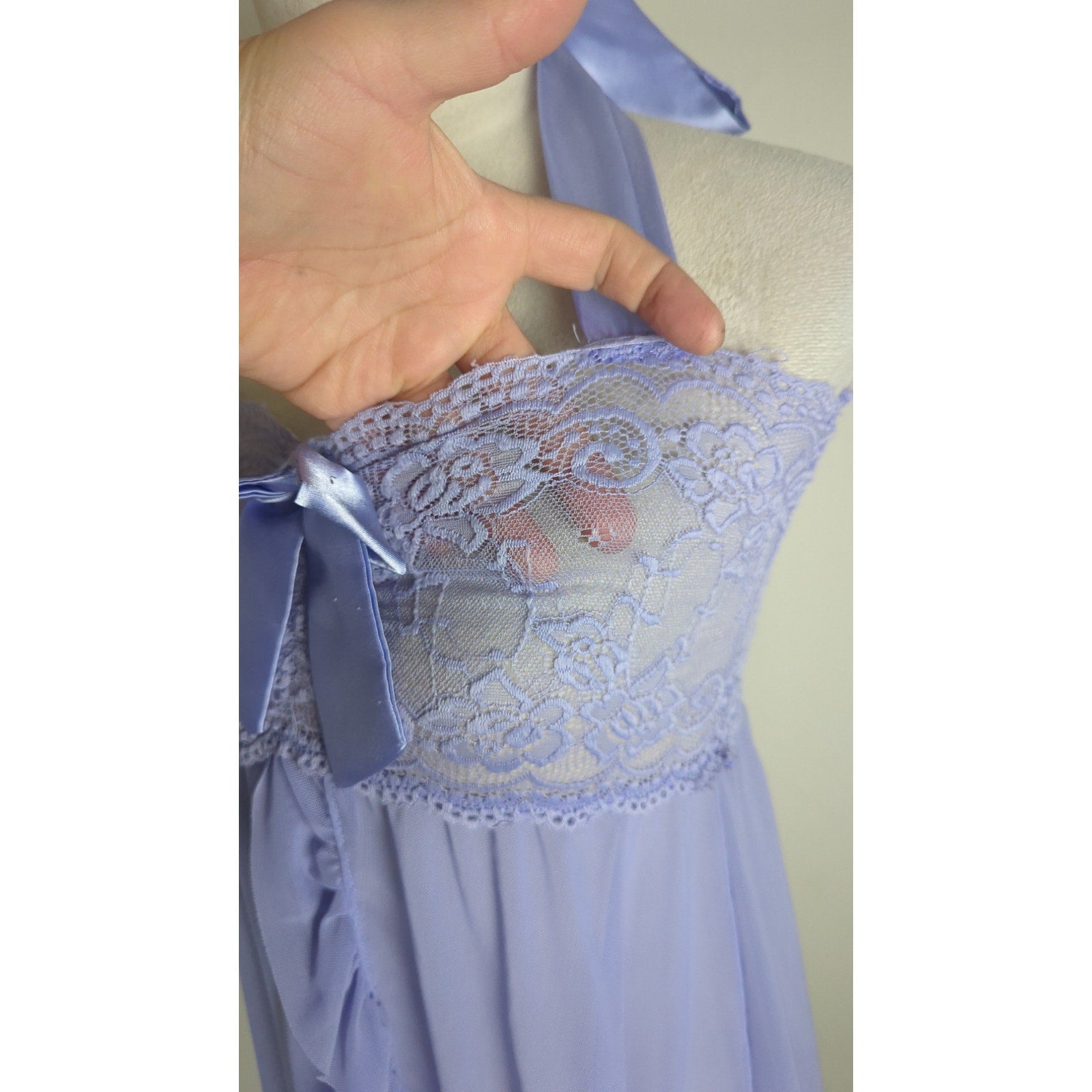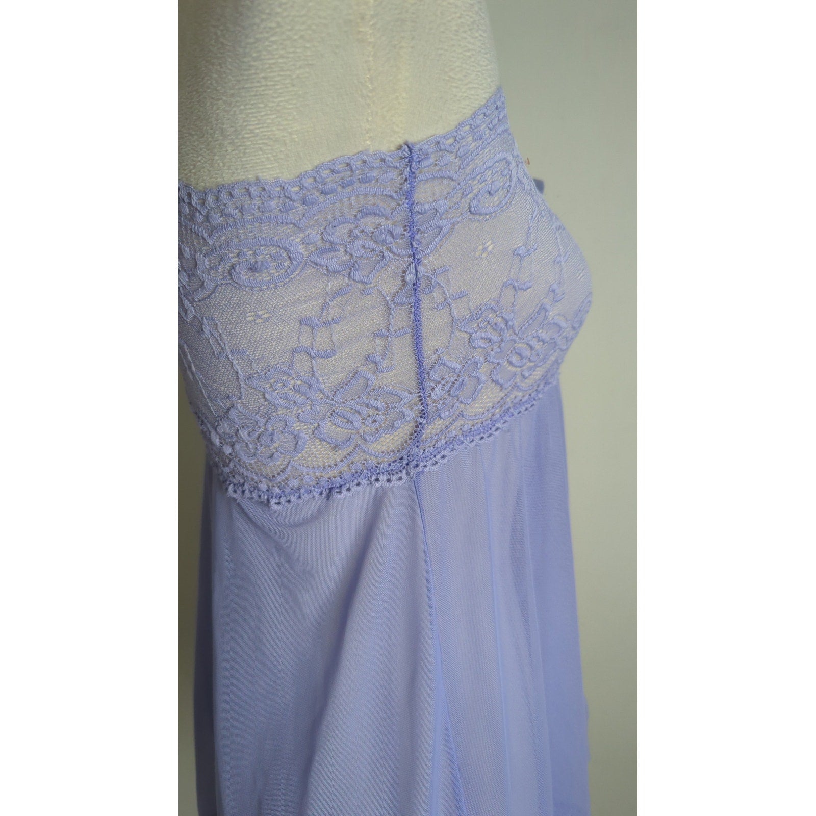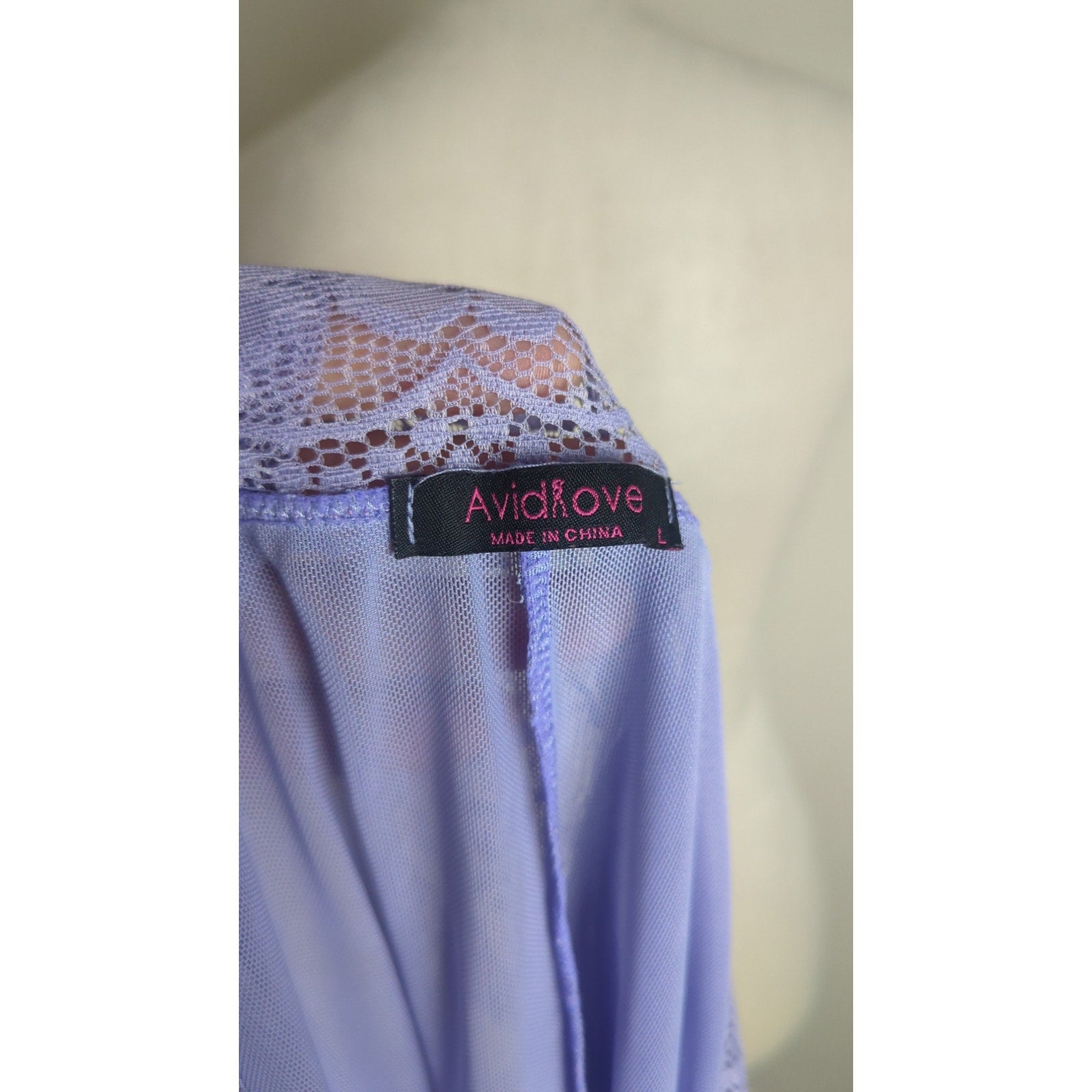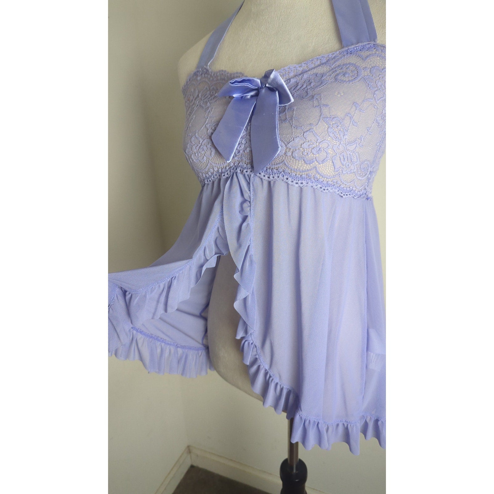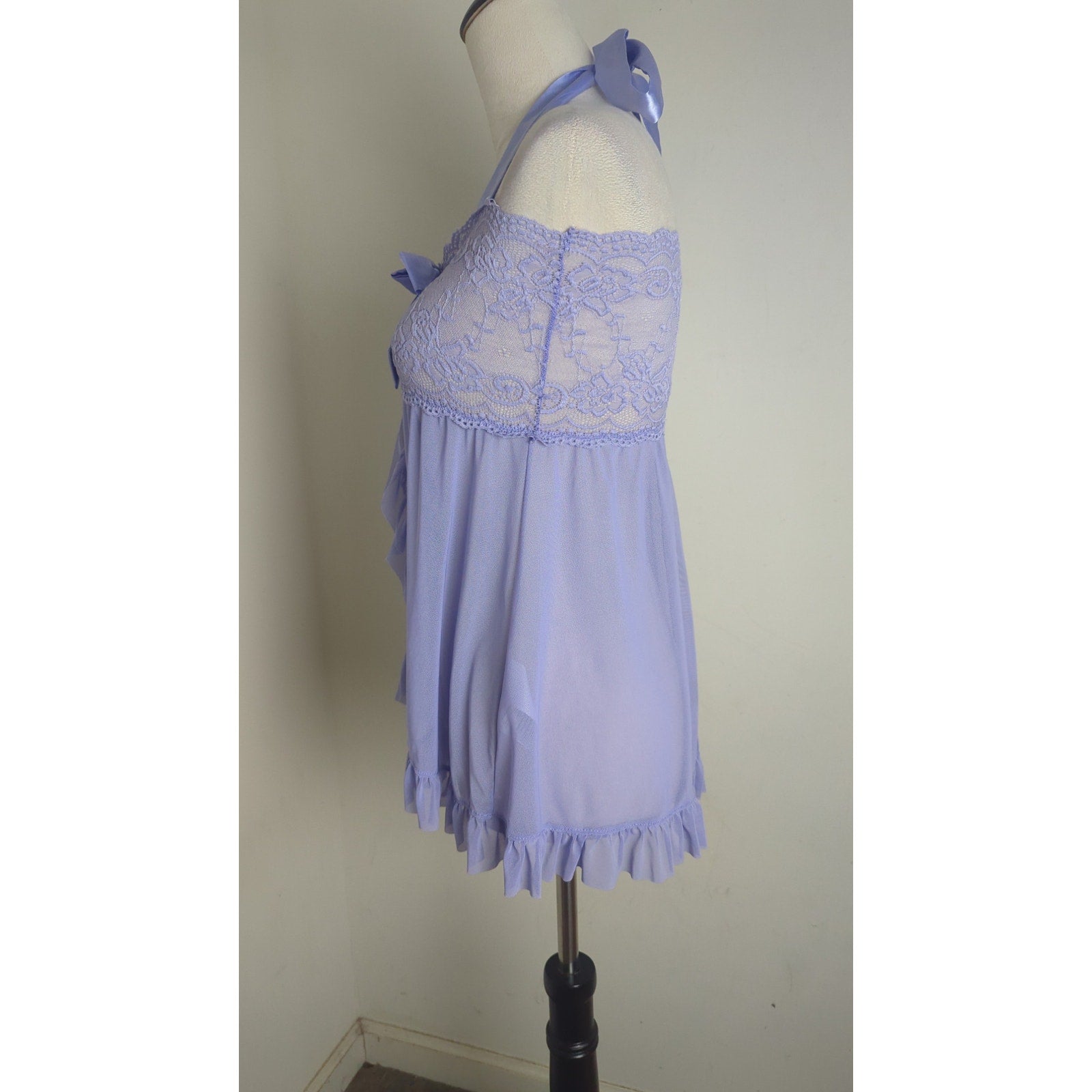 Cheer/ semi sheer purple lace mesh top with ruffled open front. Lingerie top or layer in outfit!