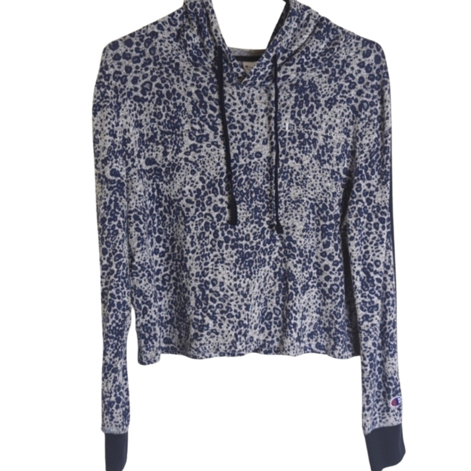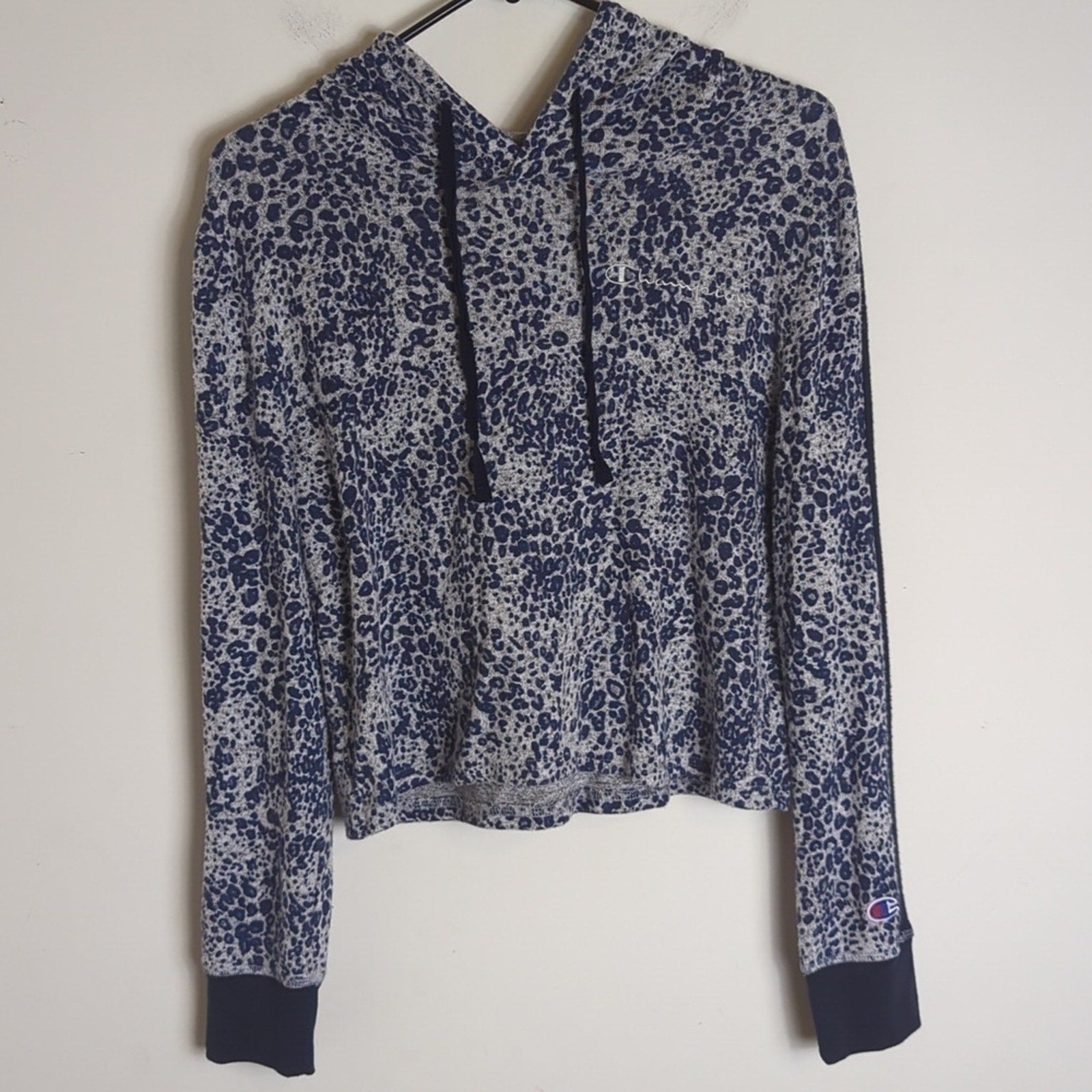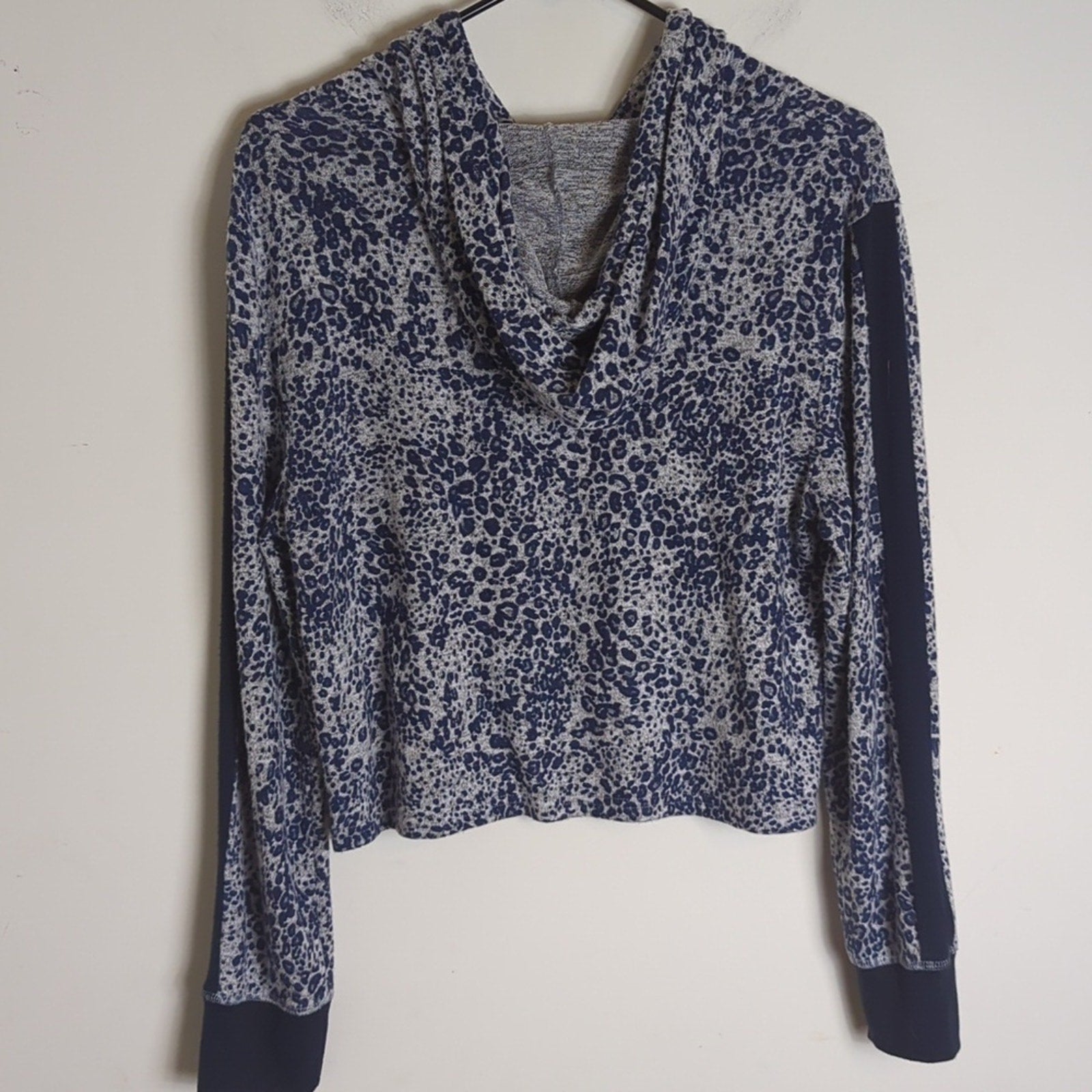 So soft and breathable! Boxy hoodie with navy blue wrist bands. This is so versatile and all options keep you comfy!