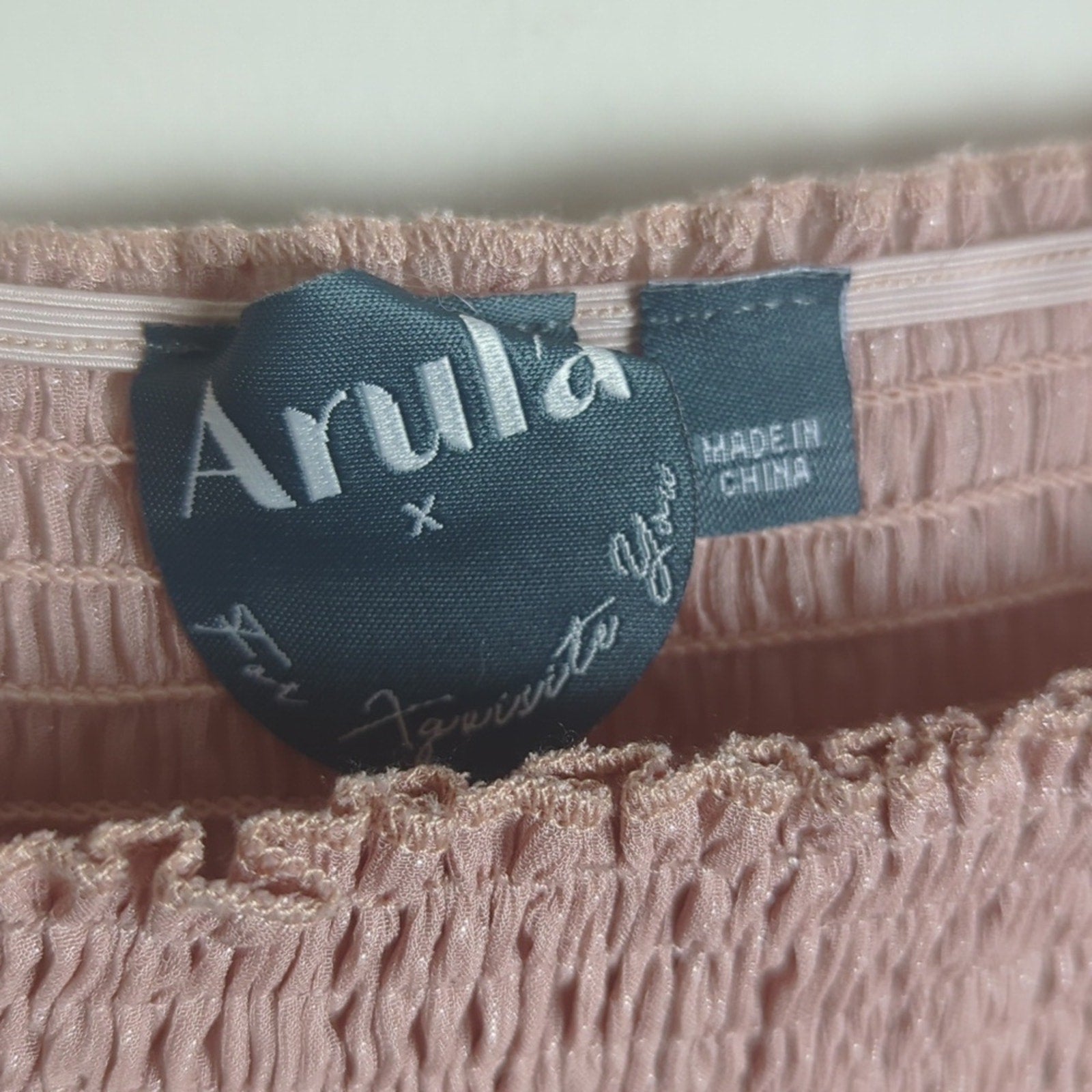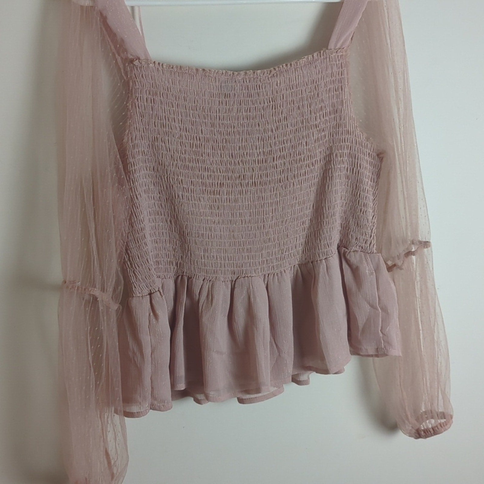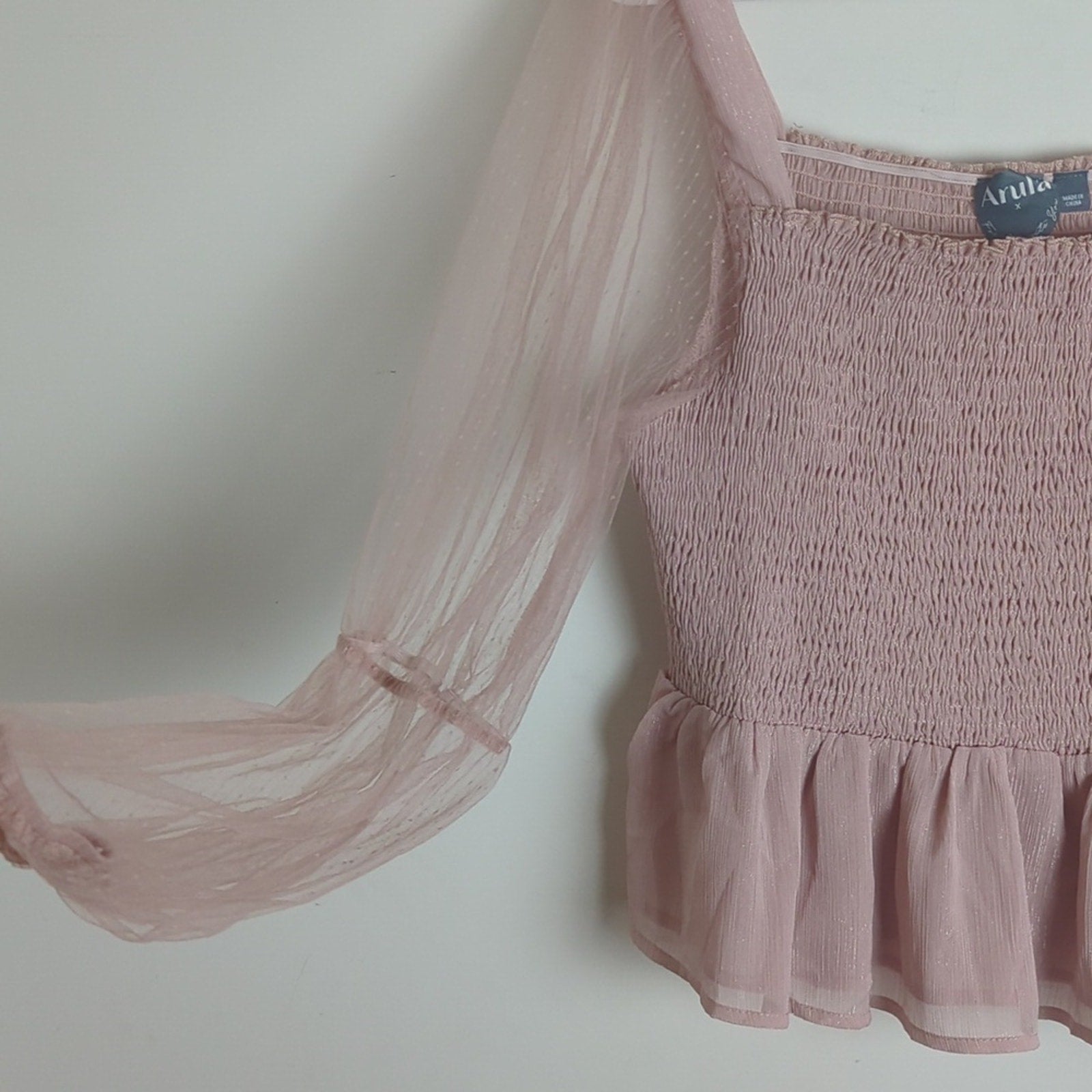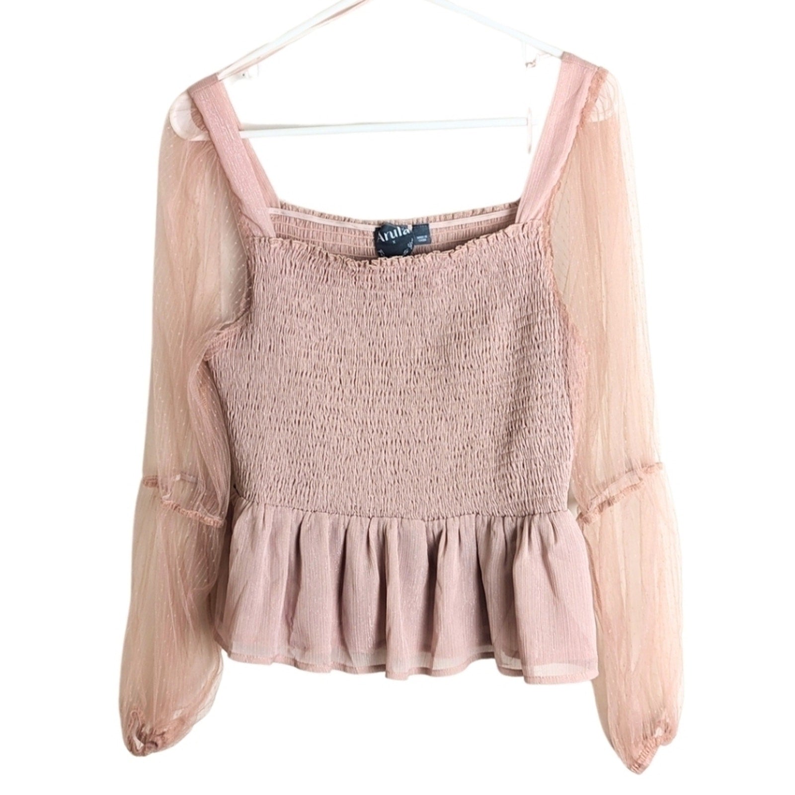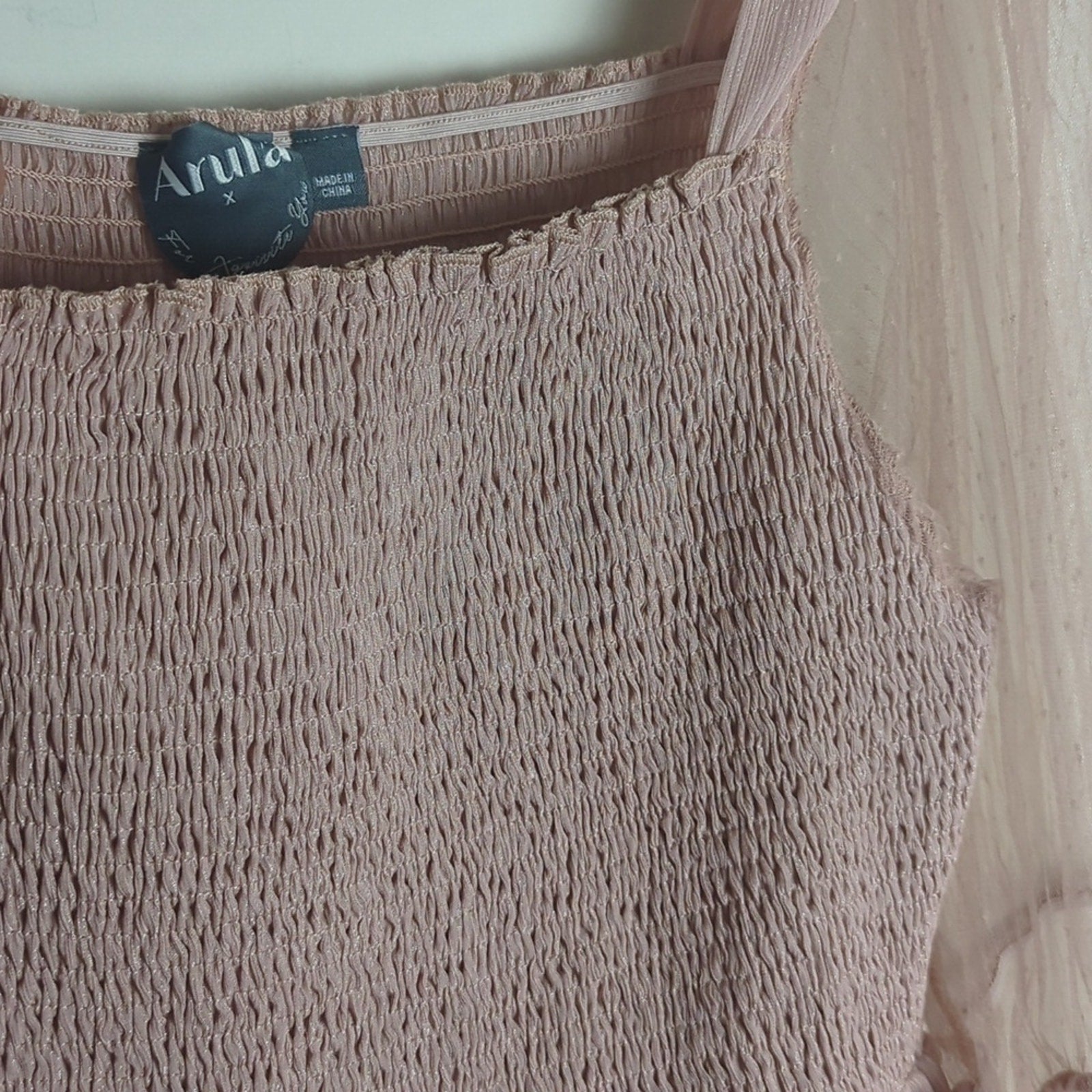 Arura Babydoll Smocked Top with Balloon Netting Sleeves Women's XL