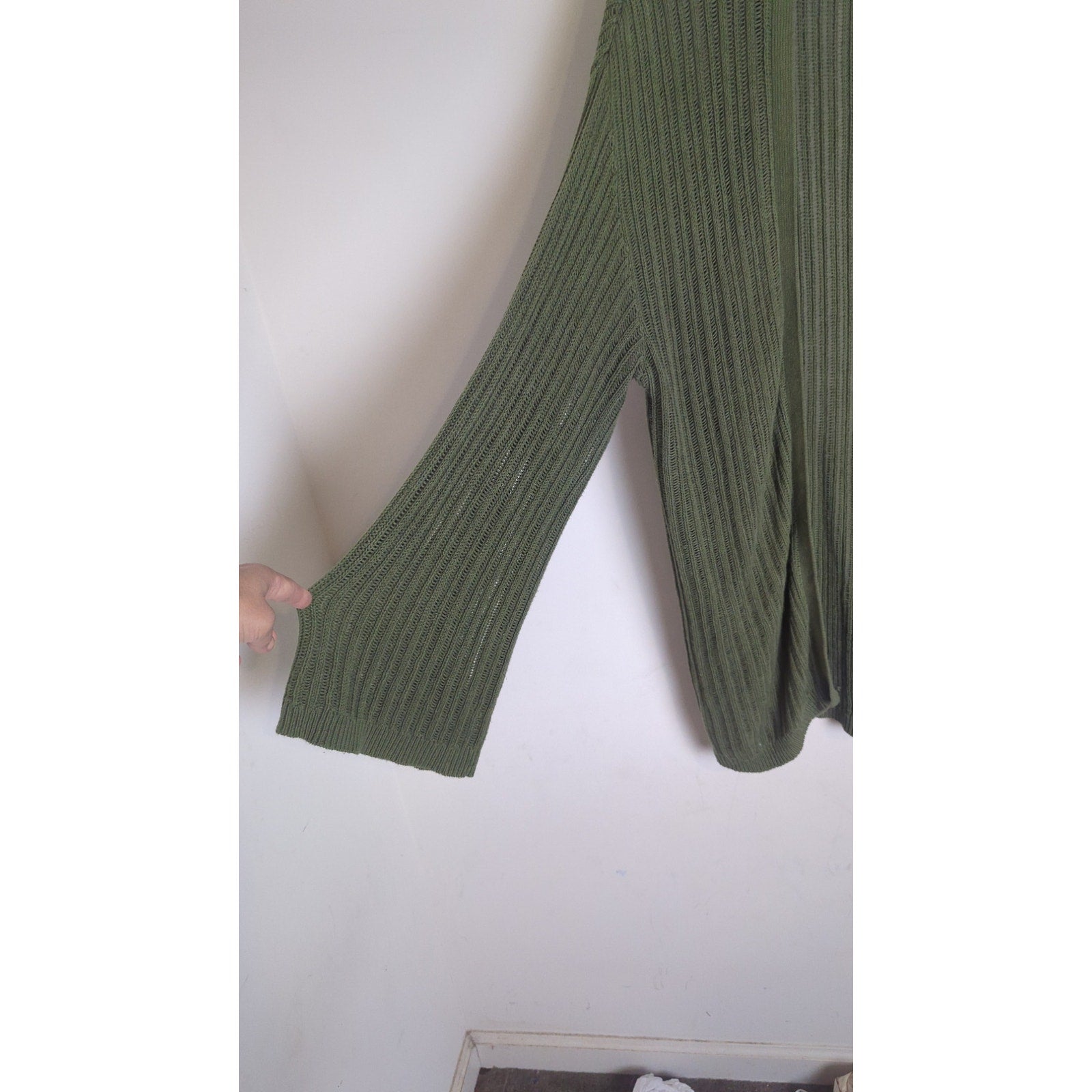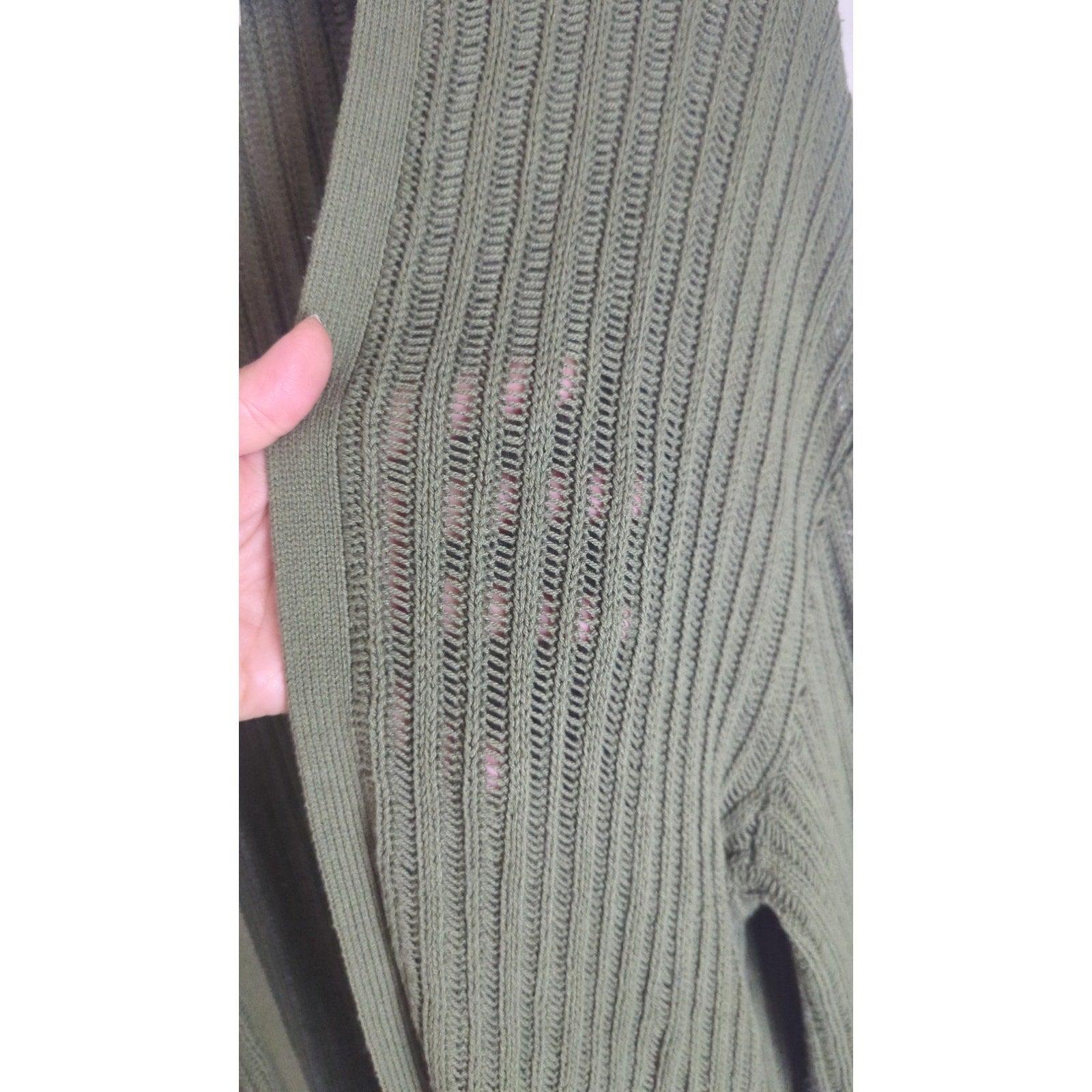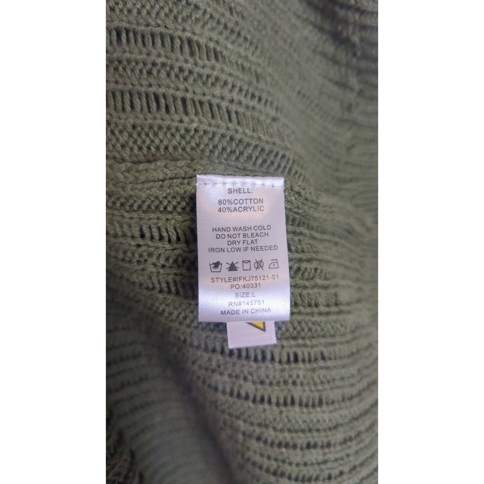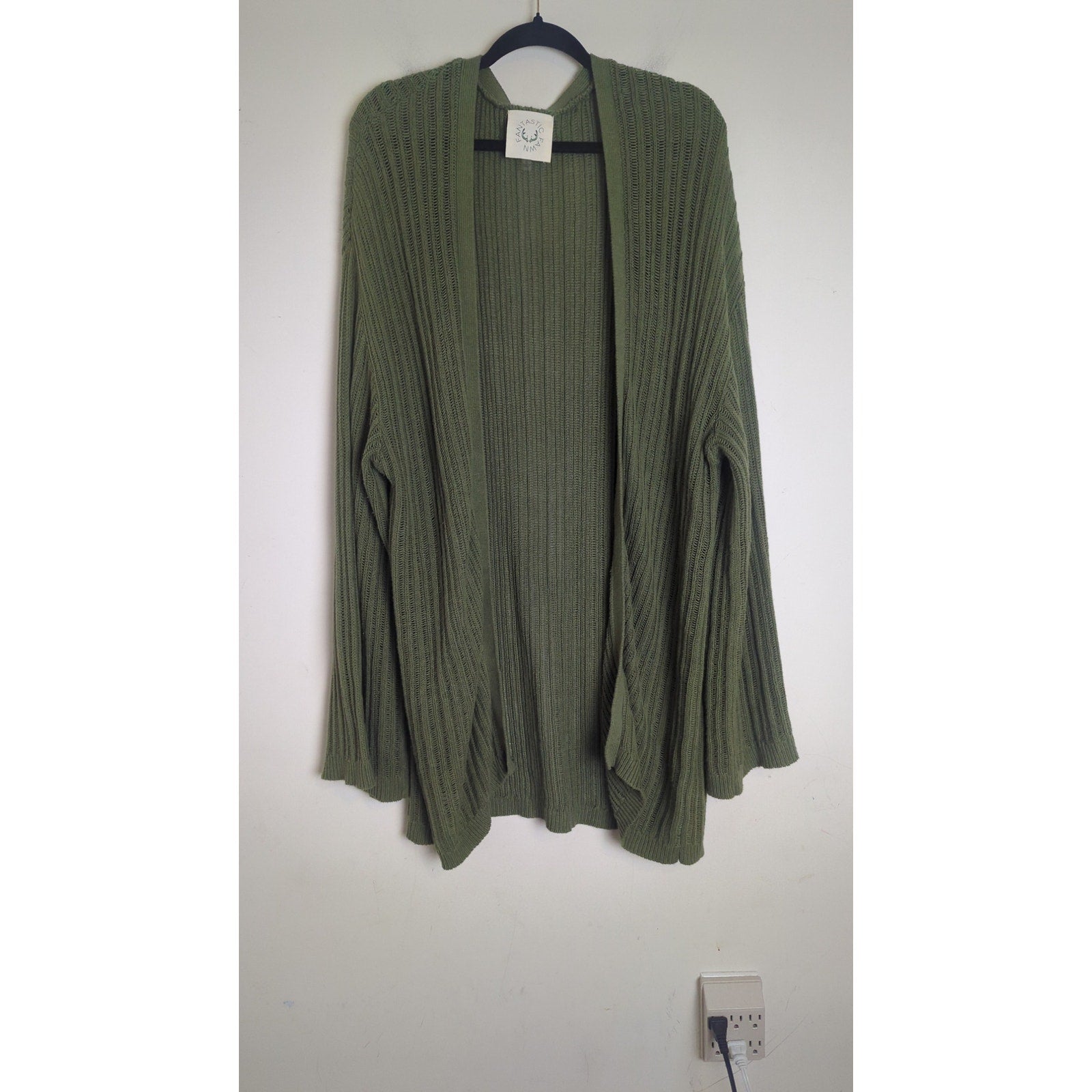 Autumn Green Long Line Slouchy Cardigan Ladder Knit Wide Sleeves Women's L