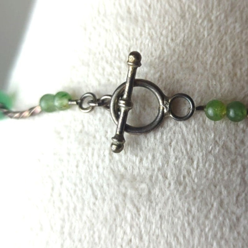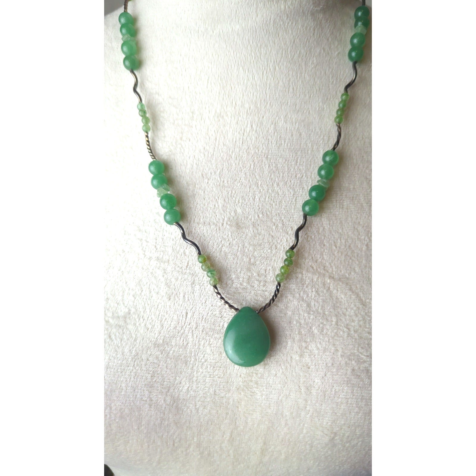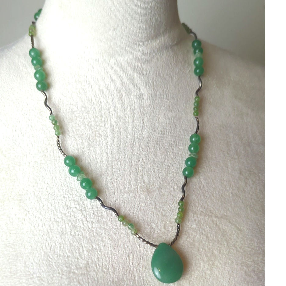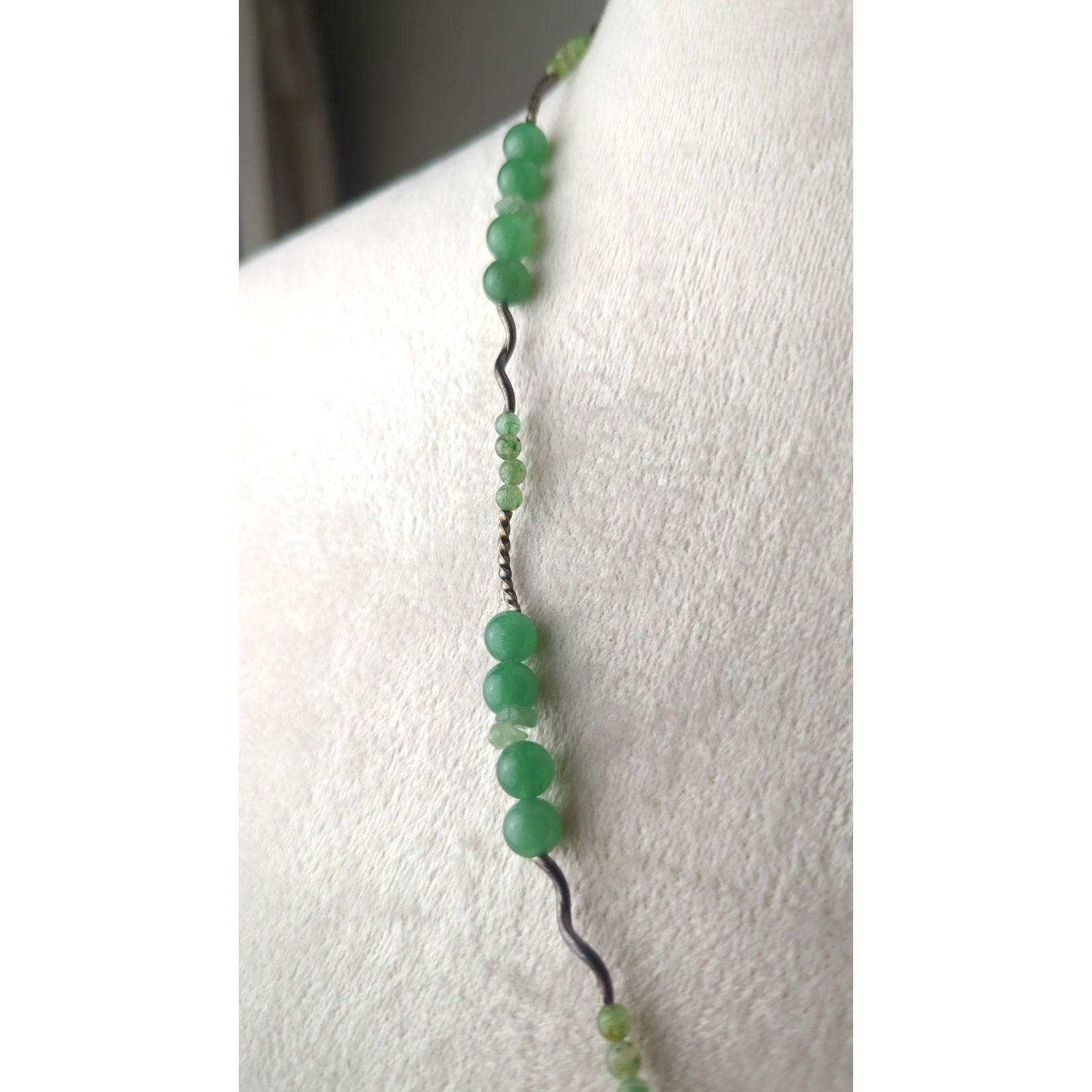 Bring a touch of earthy elegance to your jewelry collection with this vintage green stone beaded necklace.