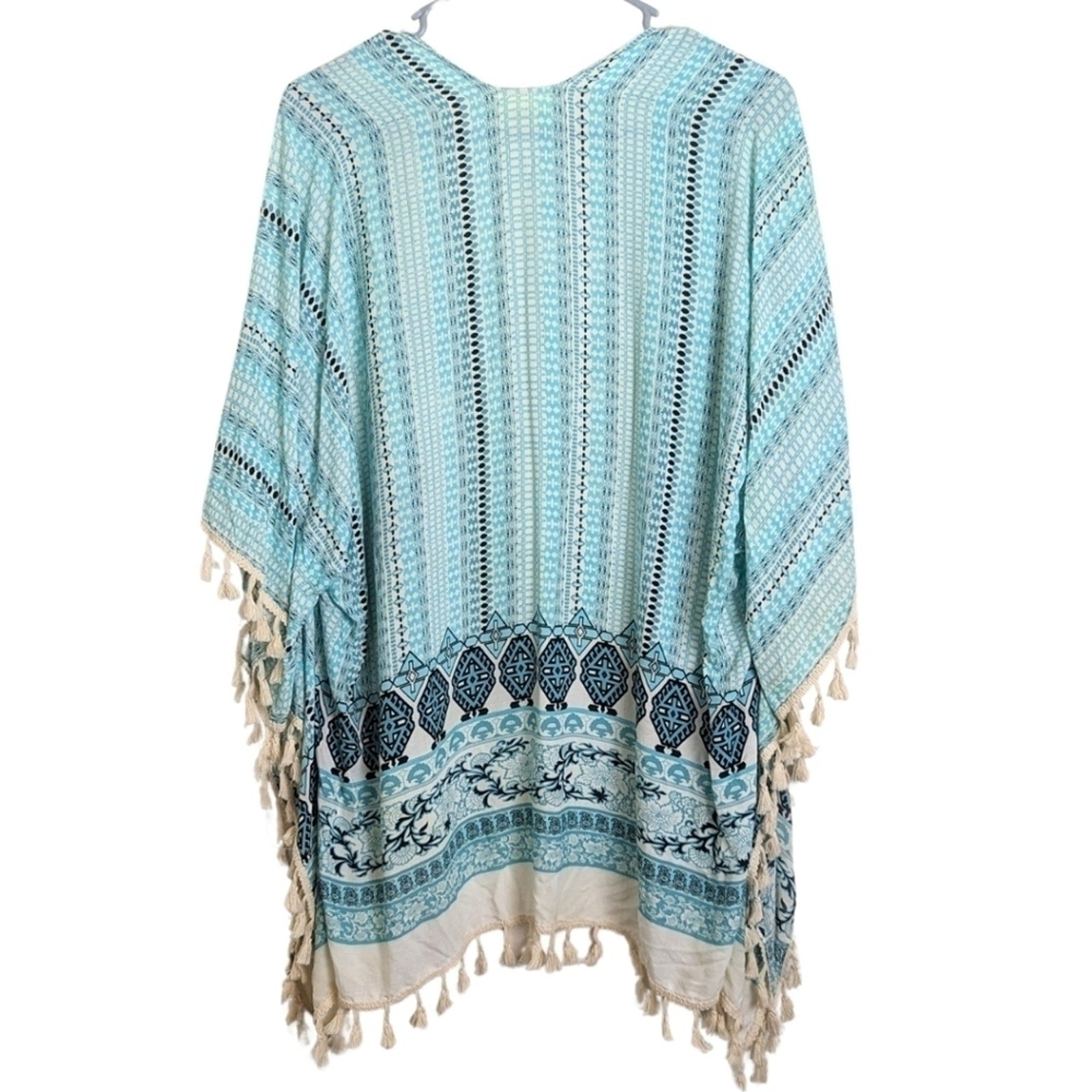 Beachy Aztec Turquoise  Open Front Cardigan Tassels One Size Women's