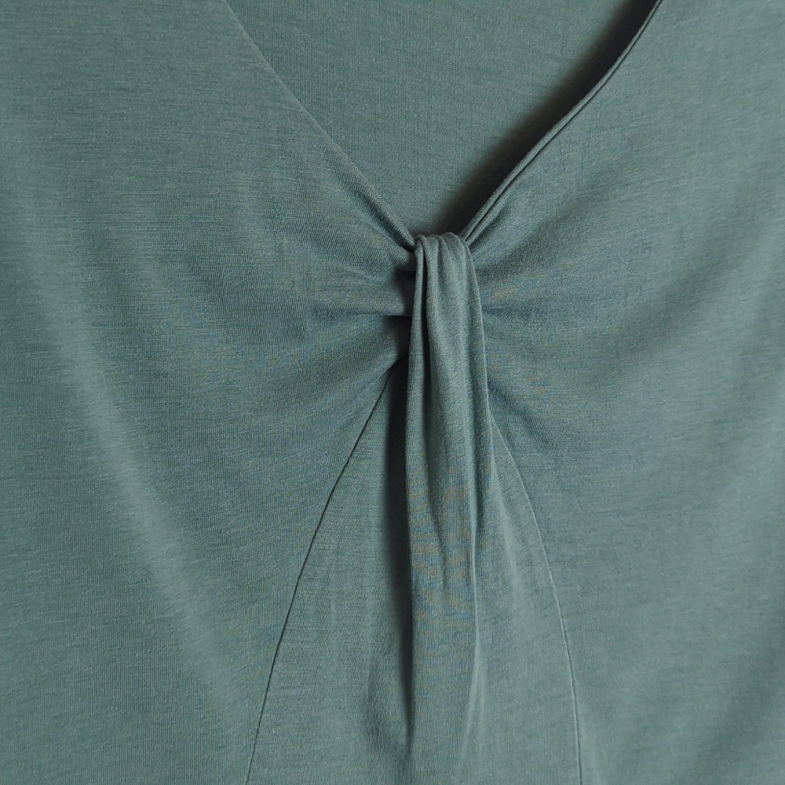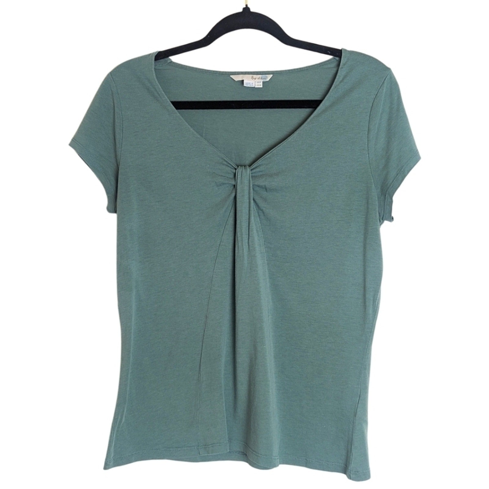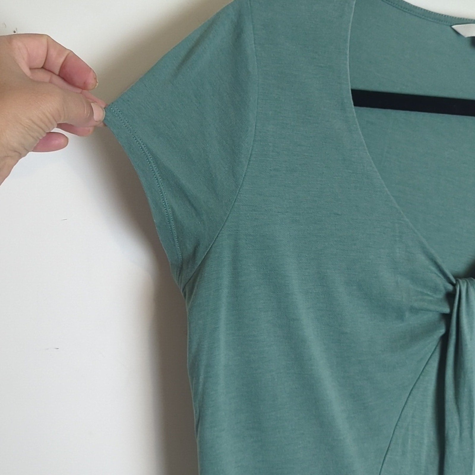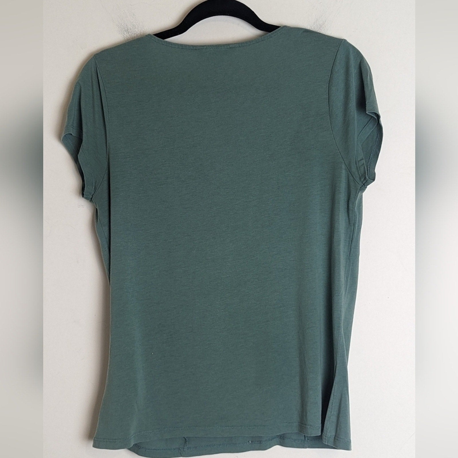 Great condition basic top to add to your wardrobe! Soft hunter green in a Lyocell and Cotton blend. V- neck with gathered detail.