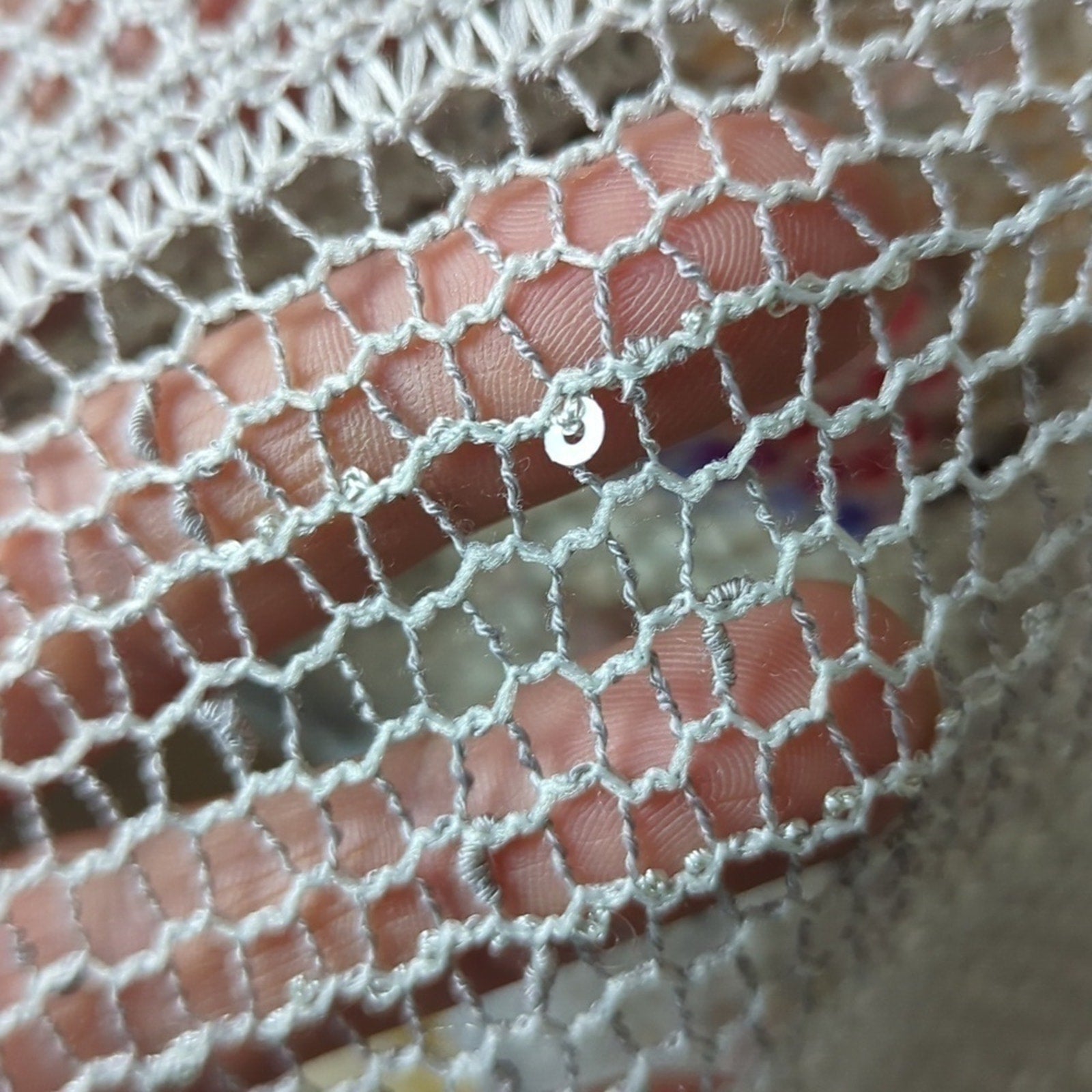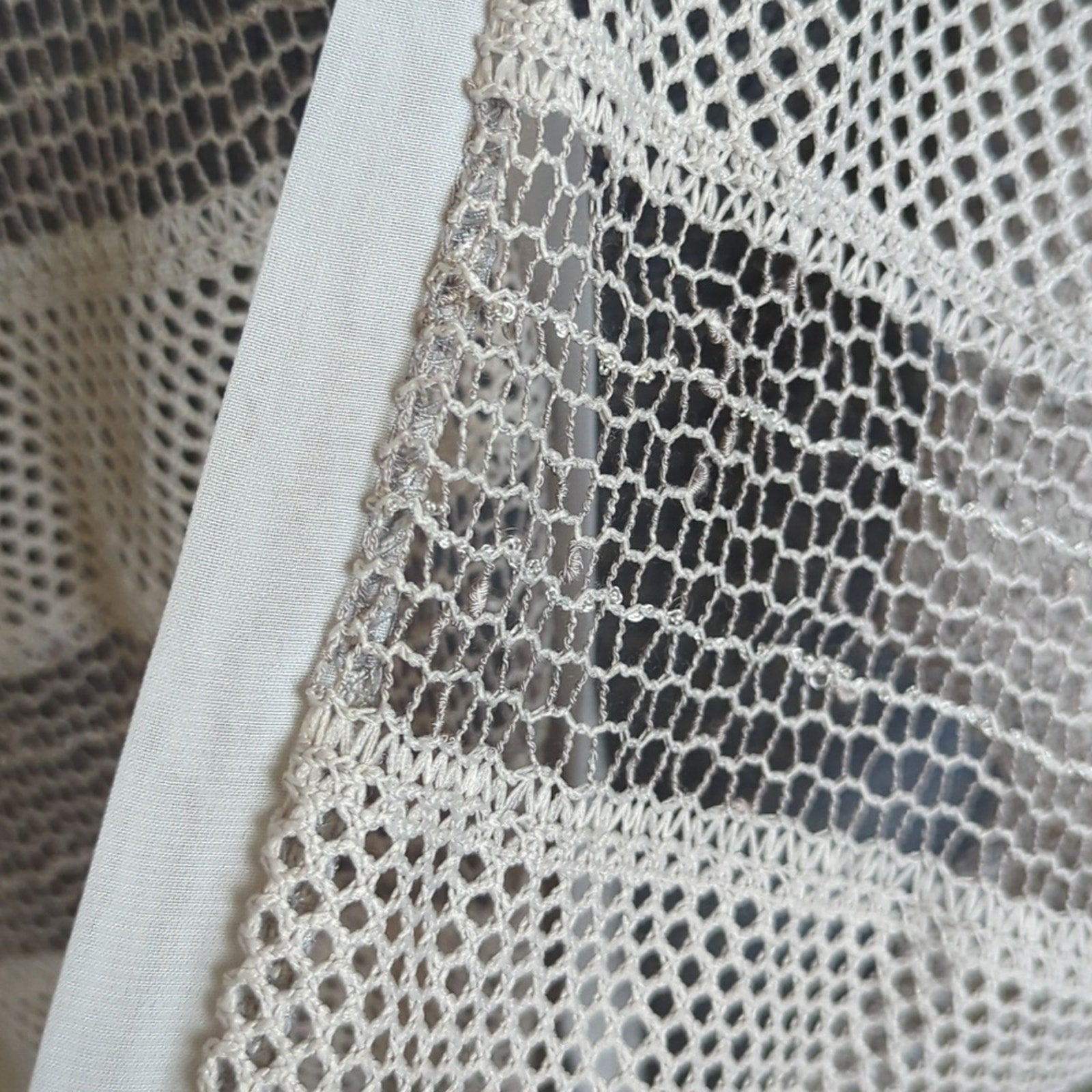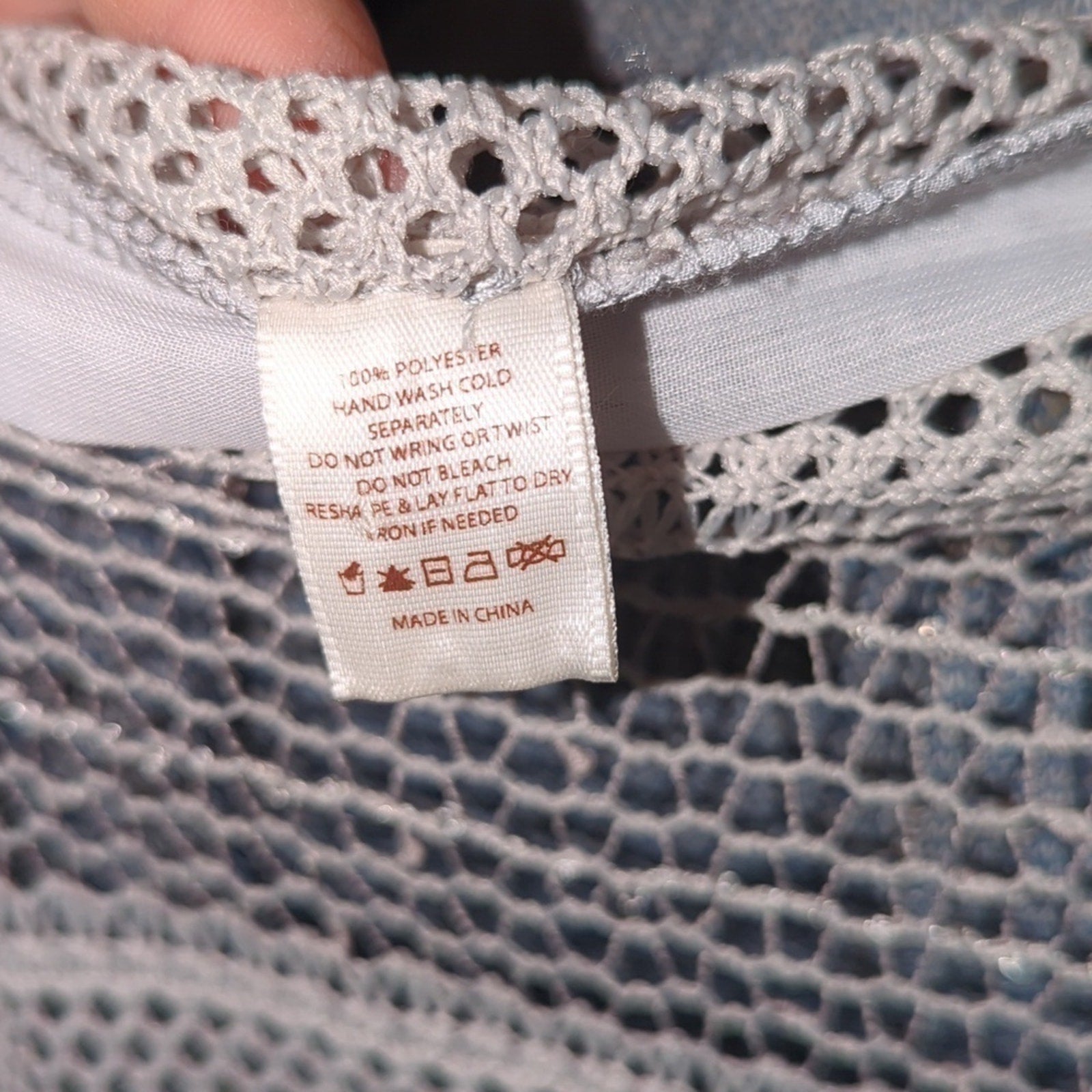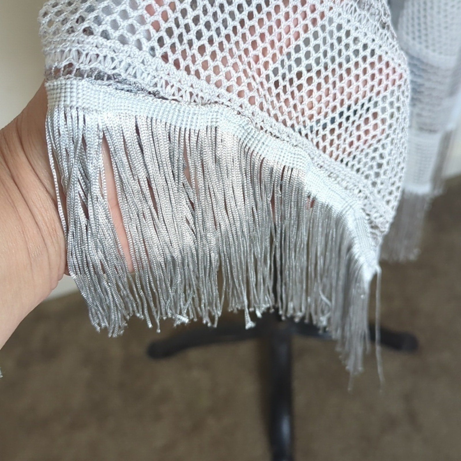 Mixed Stripes of knit and netting with fringe hem! Split sides. With some glitter beading throughout! Excellent condition!
