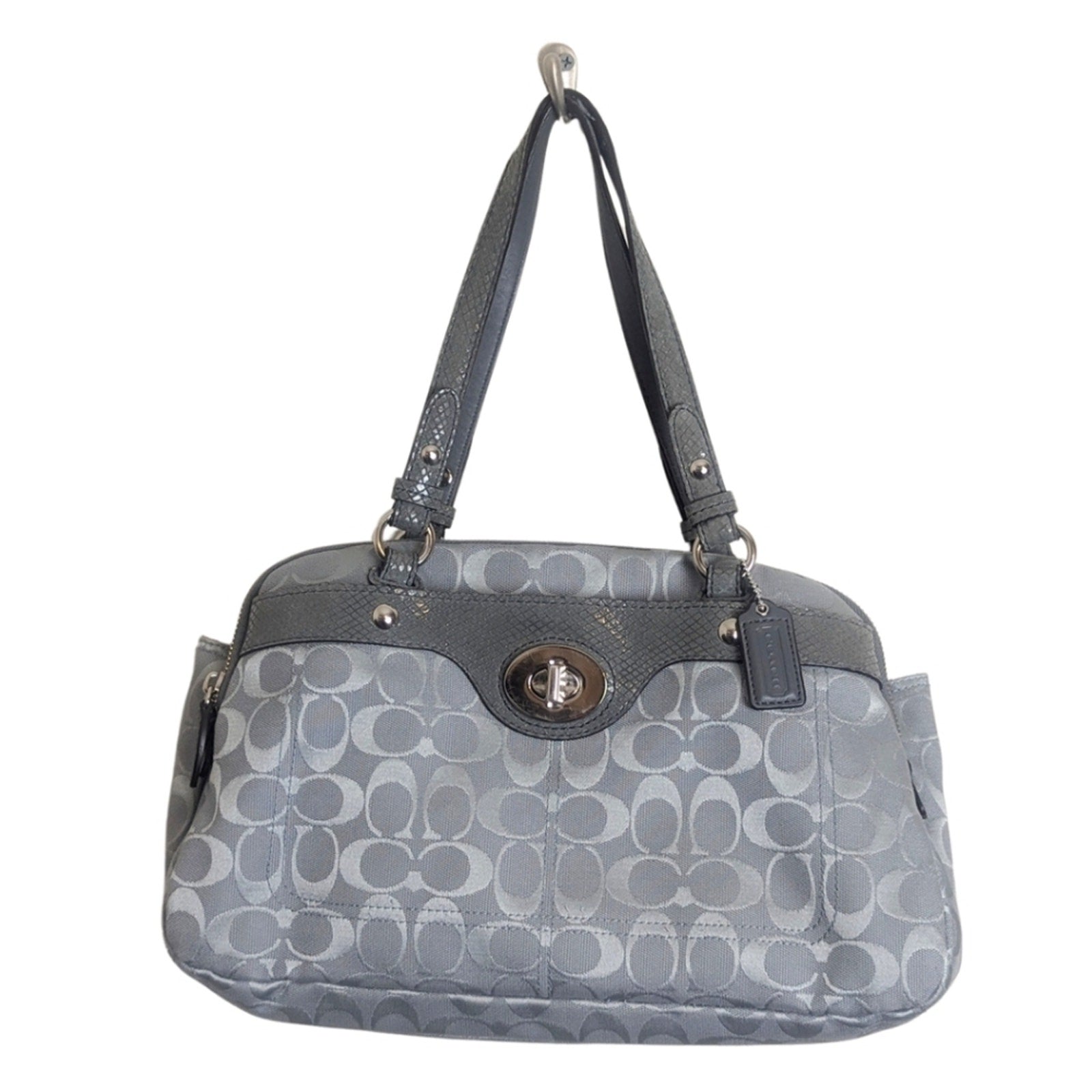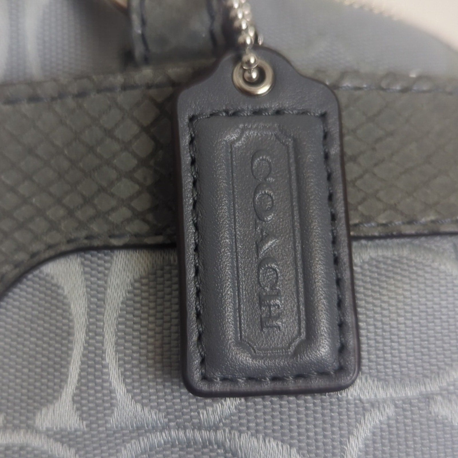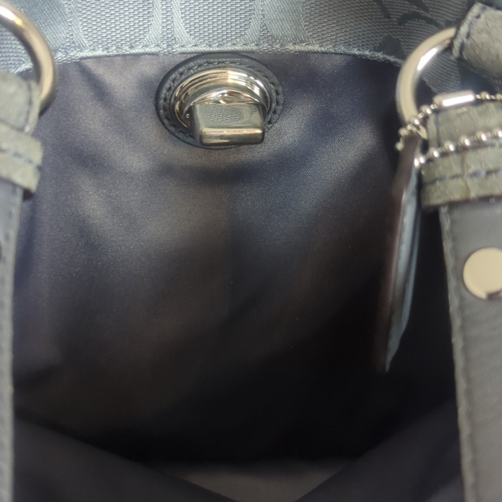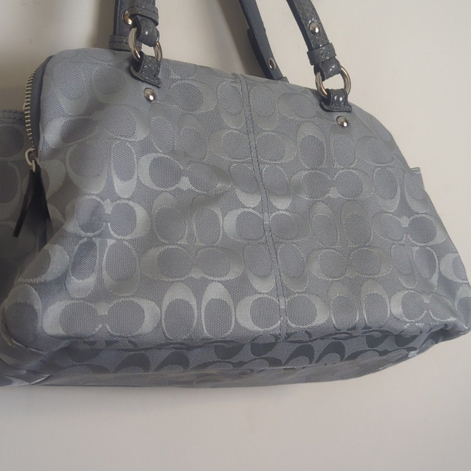 Great condition!! Classic Coach bag with purple interior on the two zipped sides! the center and outer compartment pockets are dark grey.