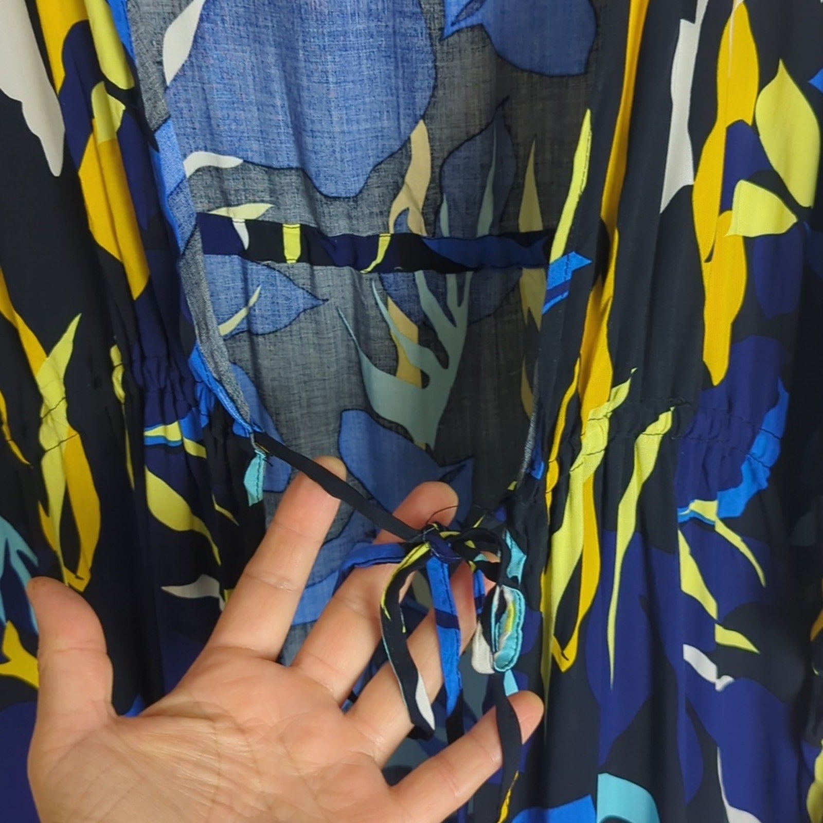 Costal Grandma Tropical Resortwear Maxi Tie Front Cardigan Coverup Women's 2X