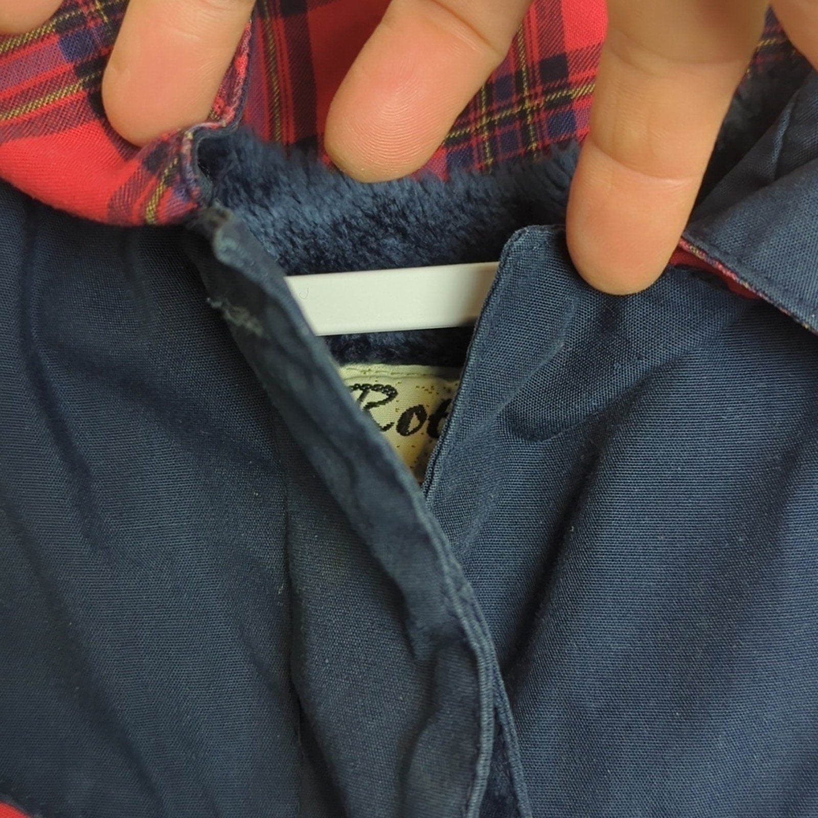 Great condition! No tears or holes! there are a few white scuff marks that I spot cleaned and the top button on the neck is missing. see pics!