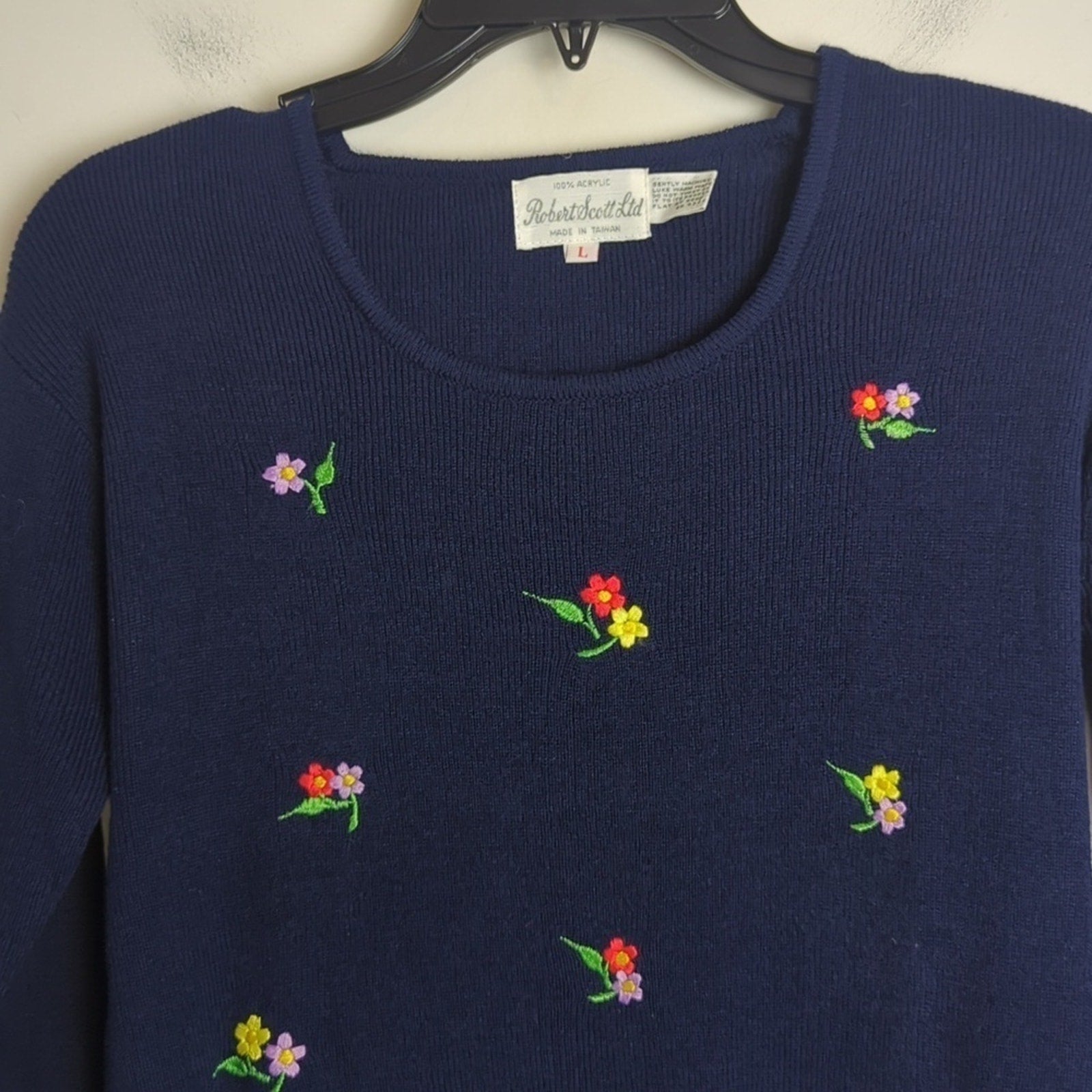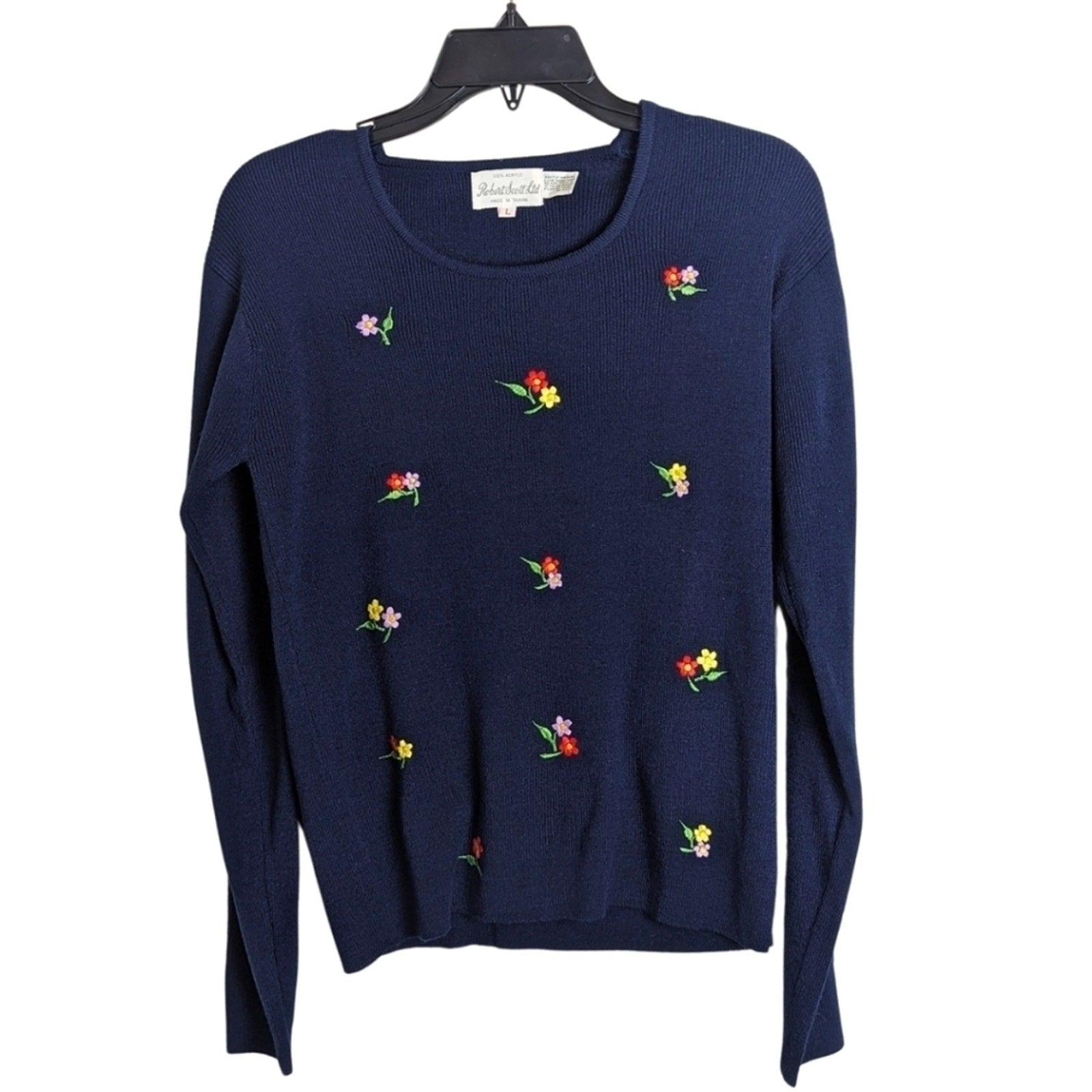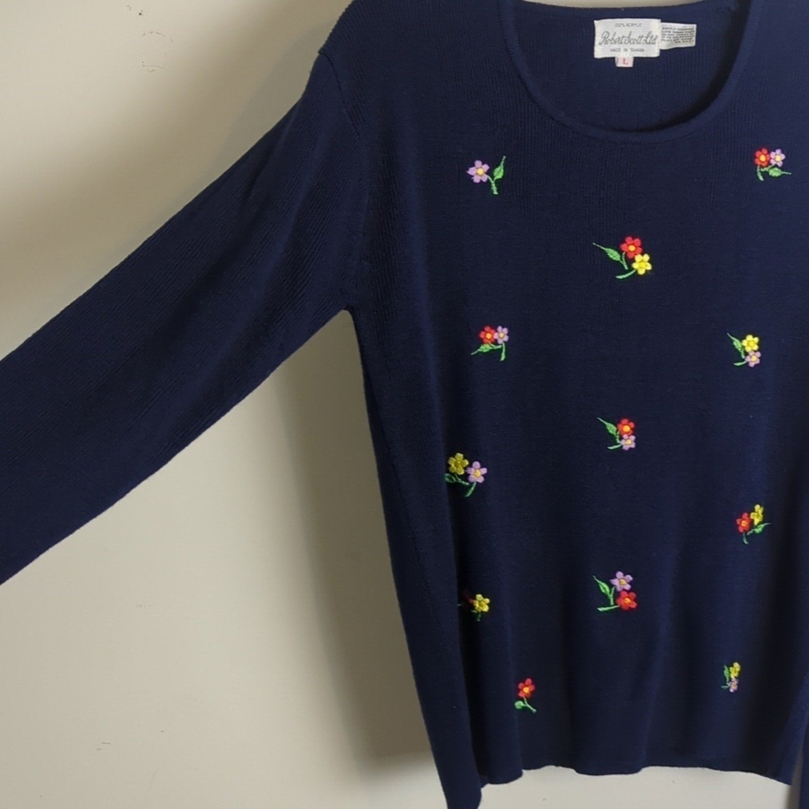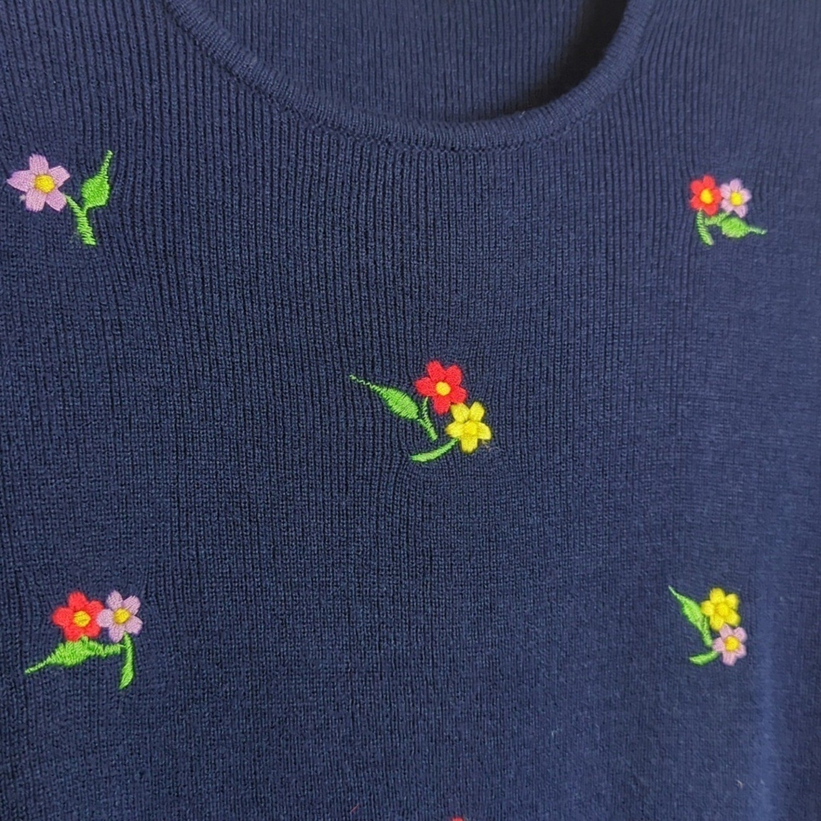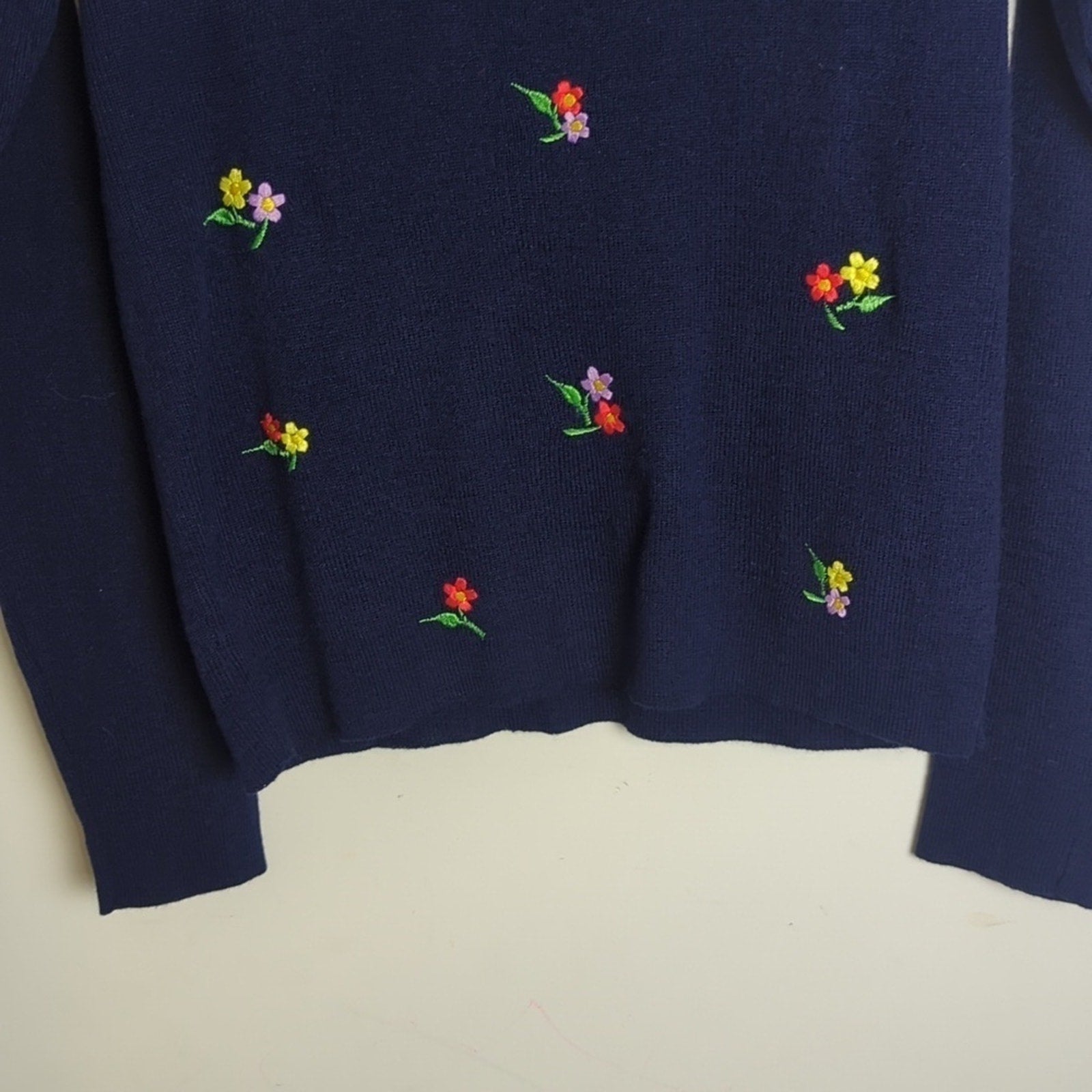 Amazing condition! Adorable slim fit vintage tight knit sweater with embroidered bright floral clusters. Slightly cropped.
