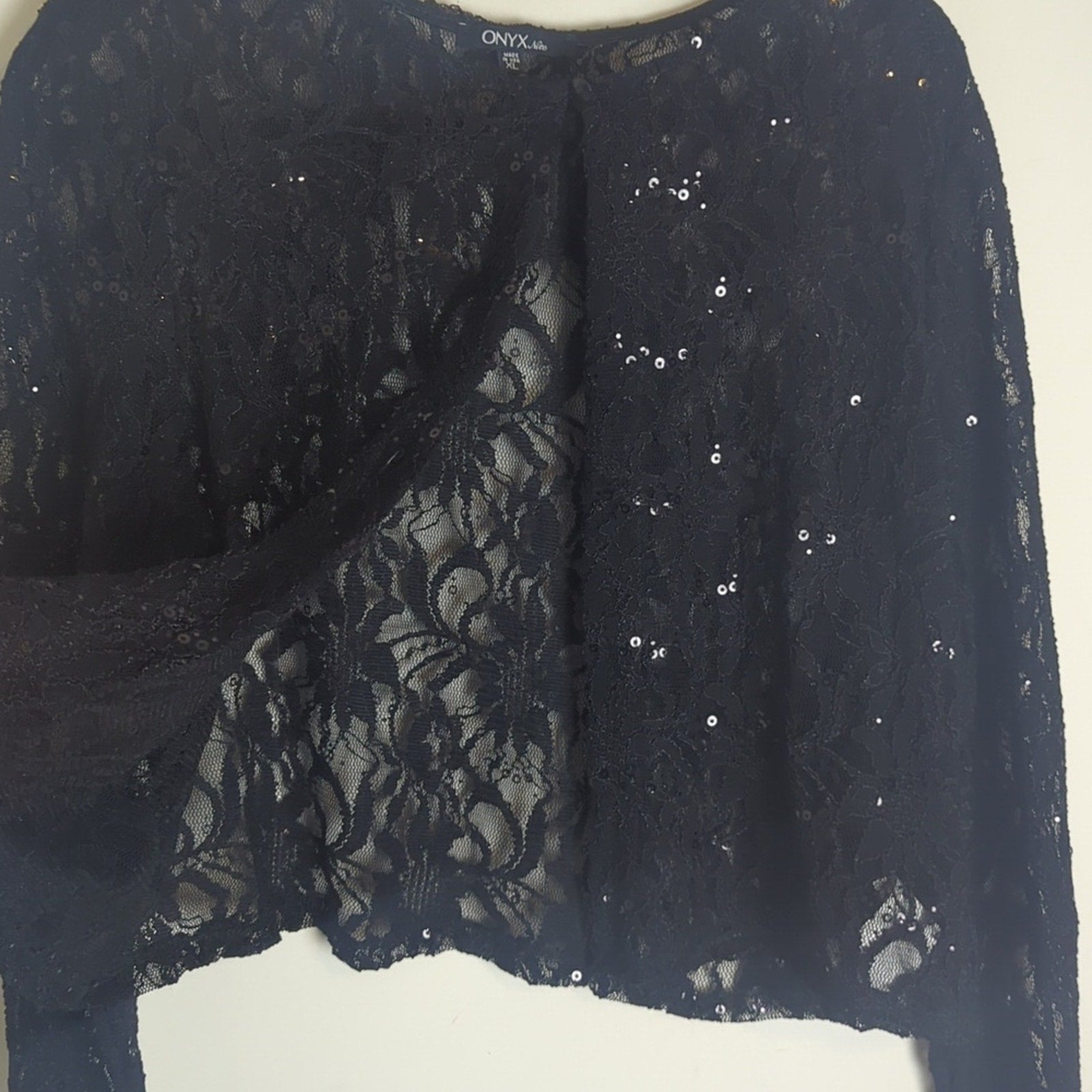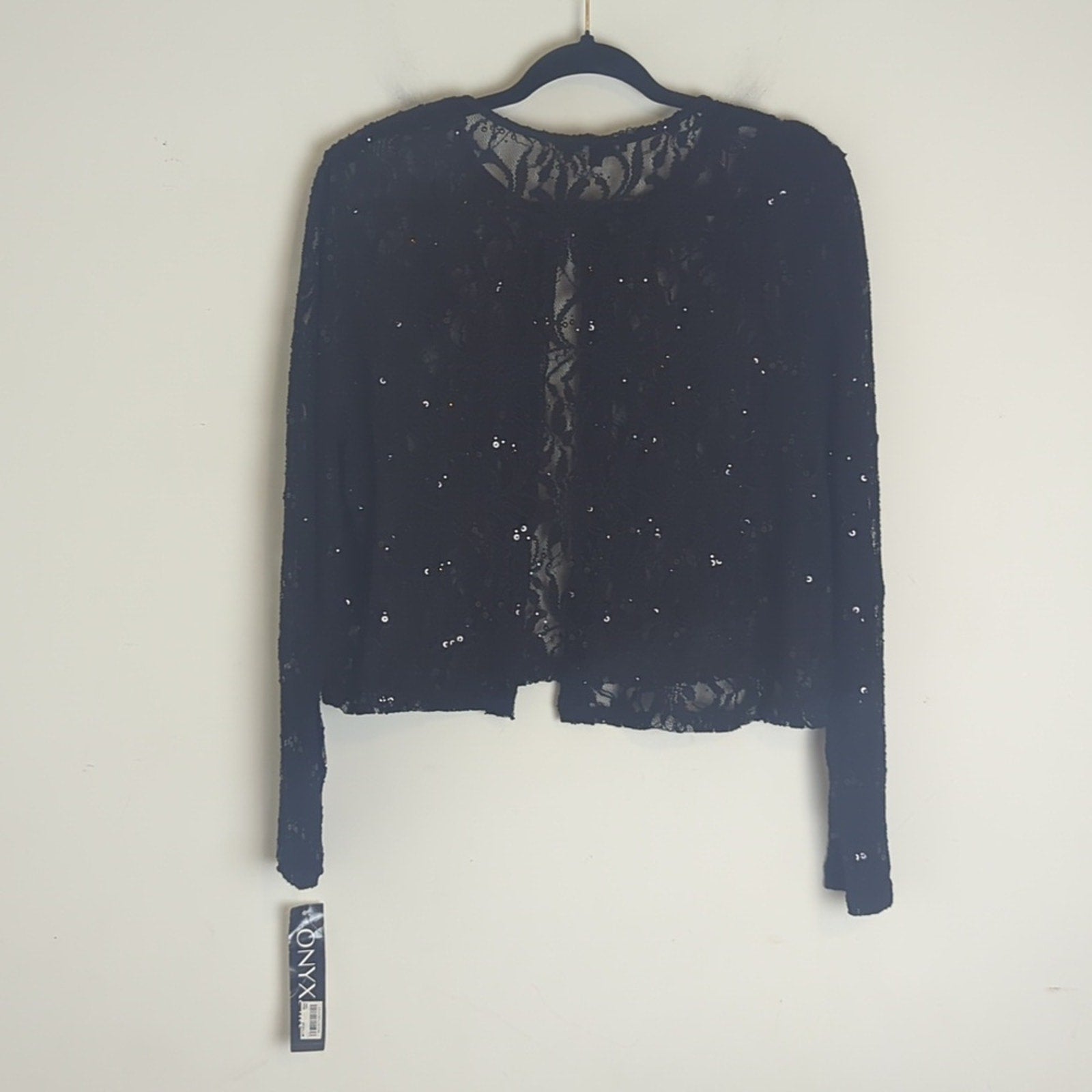 NWT Open front cropped cardigan with one neckline loop /button closure ,lace ,semi sheer.