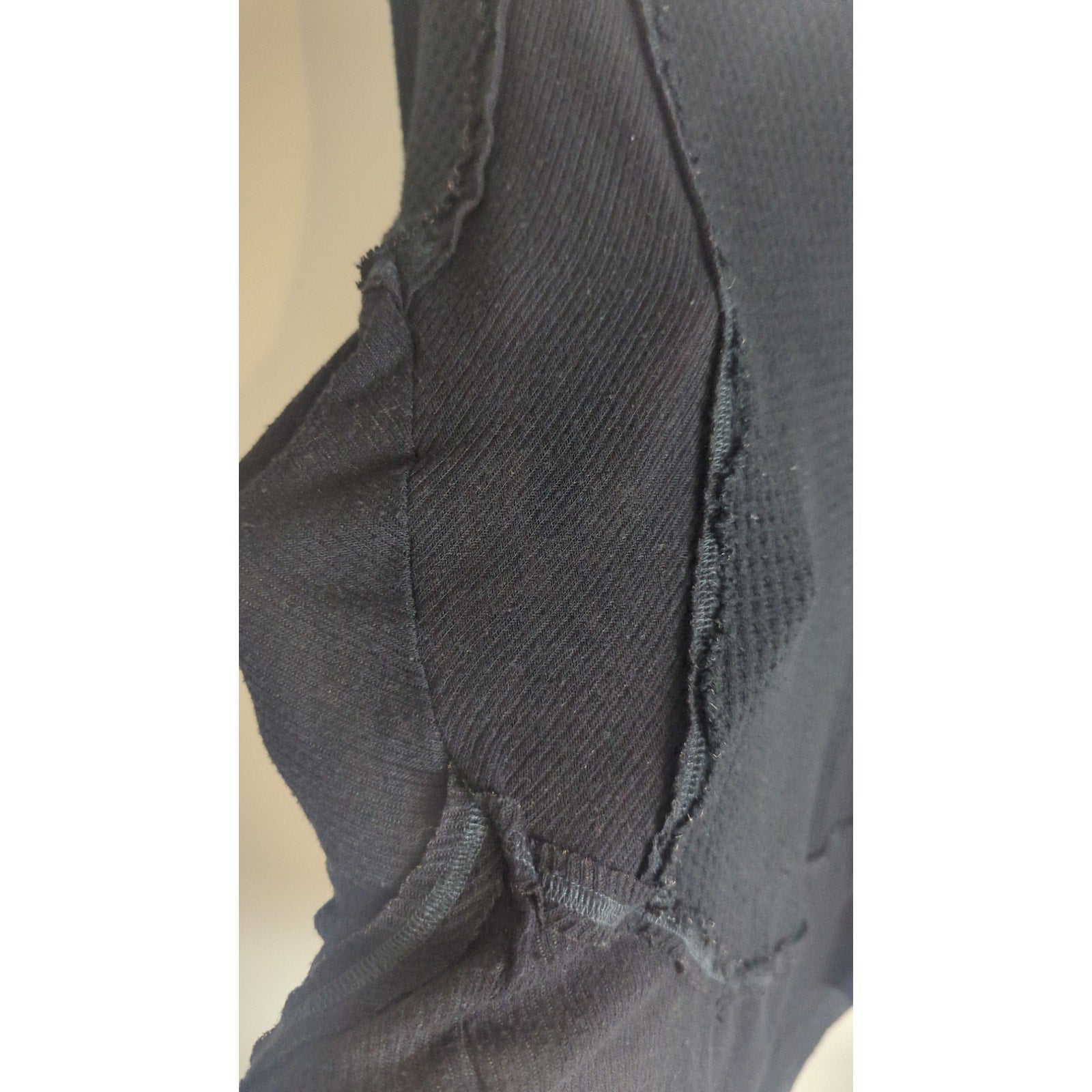 Boho slouchy waffle knit top with sheer side panels and hemline Hi-Lo hemline. Raw seams.