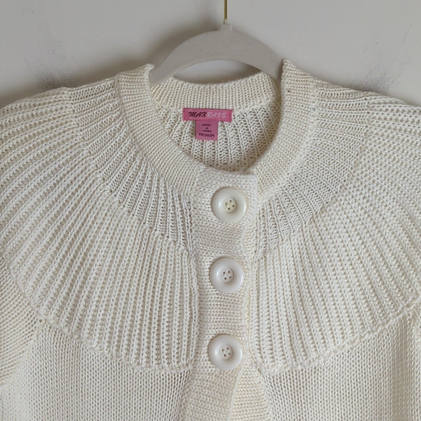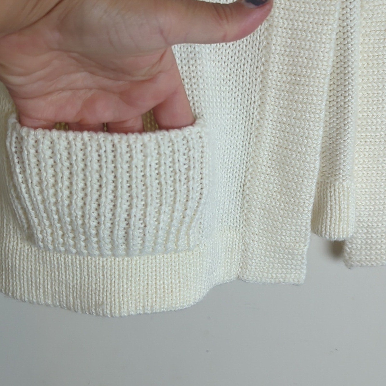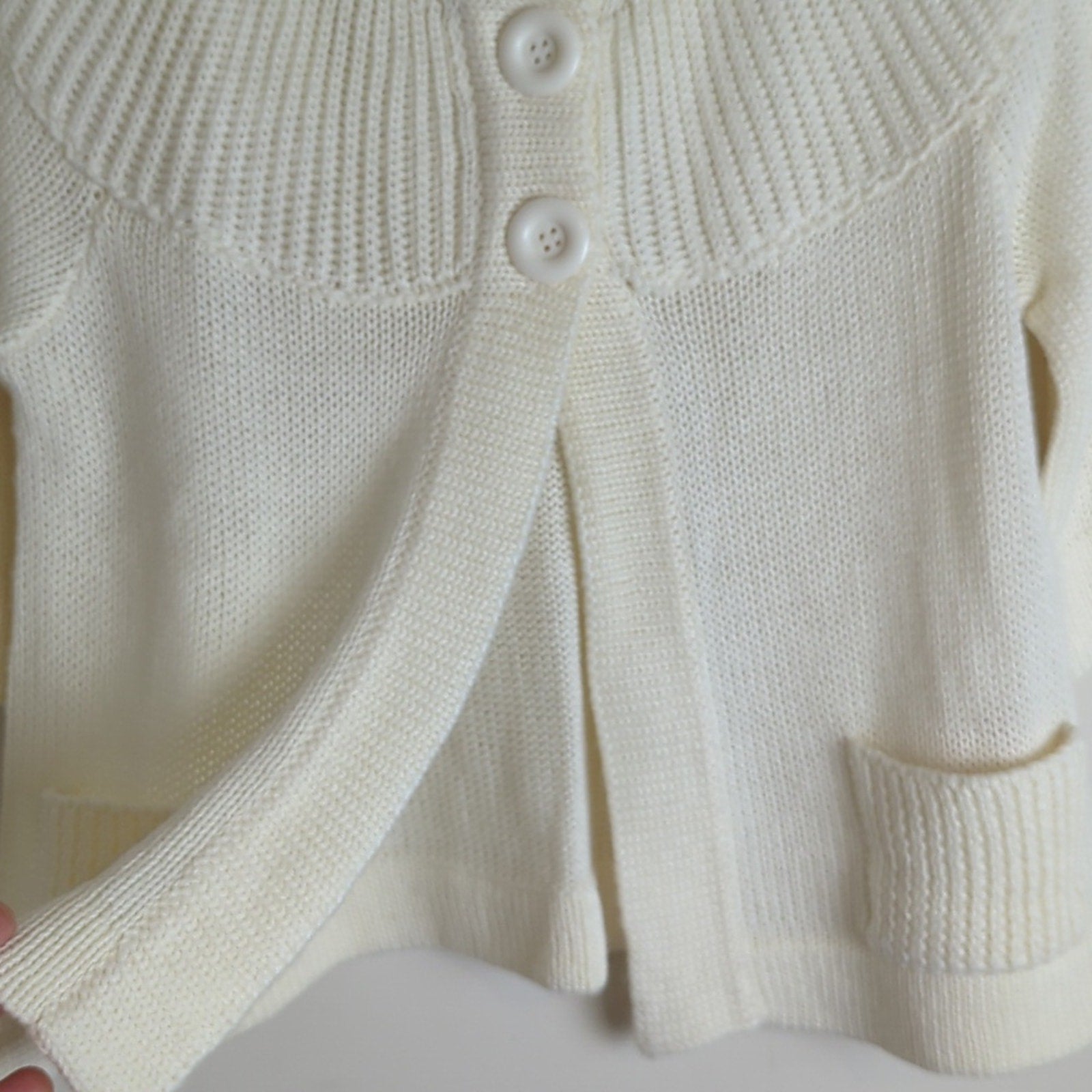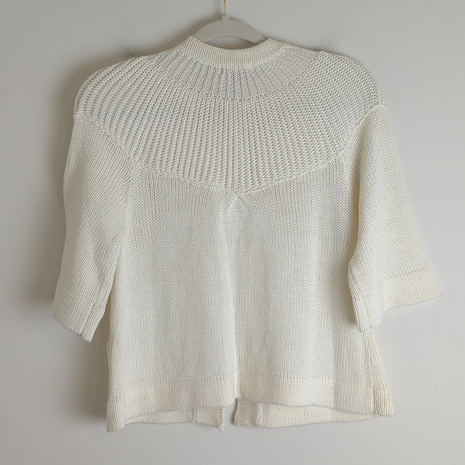 cropped soft knit ,3 chunky button down cardigan, wool blend, pockets, 3/4 sleeves.