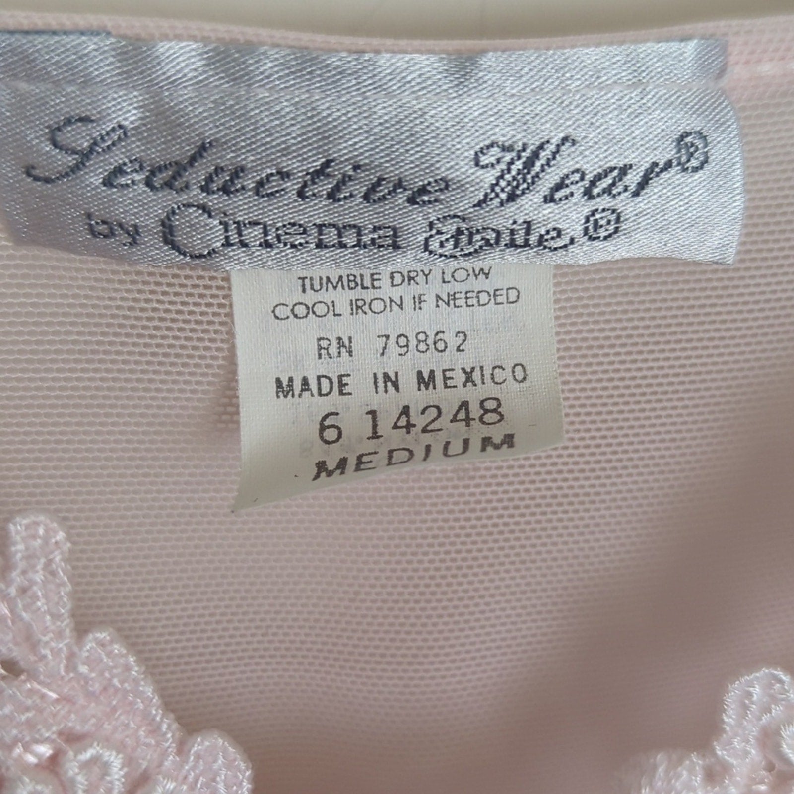 Beautiful vintage, feminine, lingerie piece. bra portion is nylon and spandex. The bodice is polyester. beautiful edging and pink rose in the center.